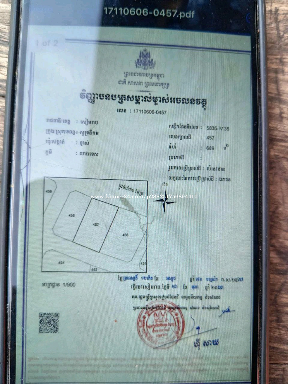 ដីលក់យោងទេស ឃុំ ខ្ចាស់ ស្រុក សូទ្រនិគម ខេត្ត សៀមរាប 🫰ដីជាប់កៅស៊ូក្បាល20mជំរៅ34m 🫰ជាប់ផ្លូវកៅស៊ូ30mនិងជាប់ផ្លូវក្រហម15mក្រោយដី