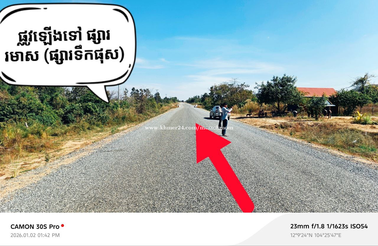 ដីលក់ ជាប់ផ្លូវកៅស៊ូ (ផ្លូវរដ្ឋ ៥០ម) • ឃុំក្រាំងស្គារ ស្រុកទឹកផុស ខេត្តកំពង់ឆ្នាំង • ក្បាលដី 15ម ជម្រៅ 70ម (ដីចាក់ស្មើផ្លូវ អាចធ្វើឃ្លាំង ផ្ទះ កន្លែងលក់ដូរបាន…) • មានទេសភាព ព្រៃភ្នំជុំវិញ ស្រស់ស្អាត • ស្ថិតលើផ្លូវរដ្ឋ 50ម (ចេញពីផ្សាររមាស ទៅផ្សារក្ដុល ផ្សារបំណក់ ឡើងទៅកំរៀង) • 300m ពីសាលារៀនបឋមសិក្សាស្ថានីយ៍ក្រាំងស្គារ និង ផ្សារ • សាលាឃុំក្រាំងស្គារ • ឡើងទៅ Green Farm Resort និងឡើងទៅ រមណីដ្ឋានទឹកធ្លាល់ច្រកល្អៀង • ស្ថិតនៅក្បែរទីប្រជុំជន គម្រោងចិនអភិវឌ្ឃន៍ រមណីដ្ឋាន សាលារៀន ផ្សារ អាចធ្វើឃ្លាំងស្ដុកទំនិញ ផ្ទះលំហែរ ផ្ទះវីឡា ជិតរីសត ជើងភ្នំ និង គម្រោងផ្លូវកៅស៊ូ ទូរស័ព្ទលេខ៖ 0974218xxxClick To Call. 093402xxxClick To Call