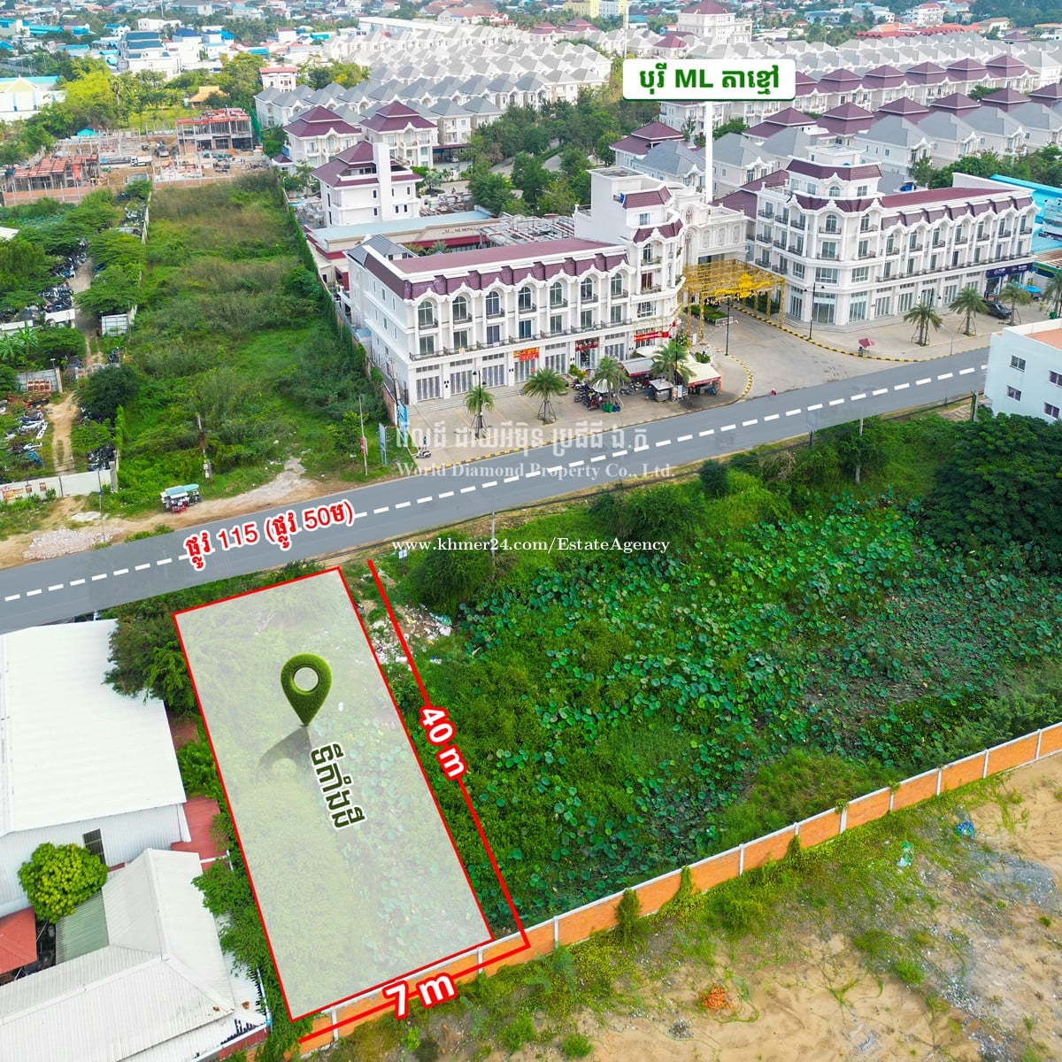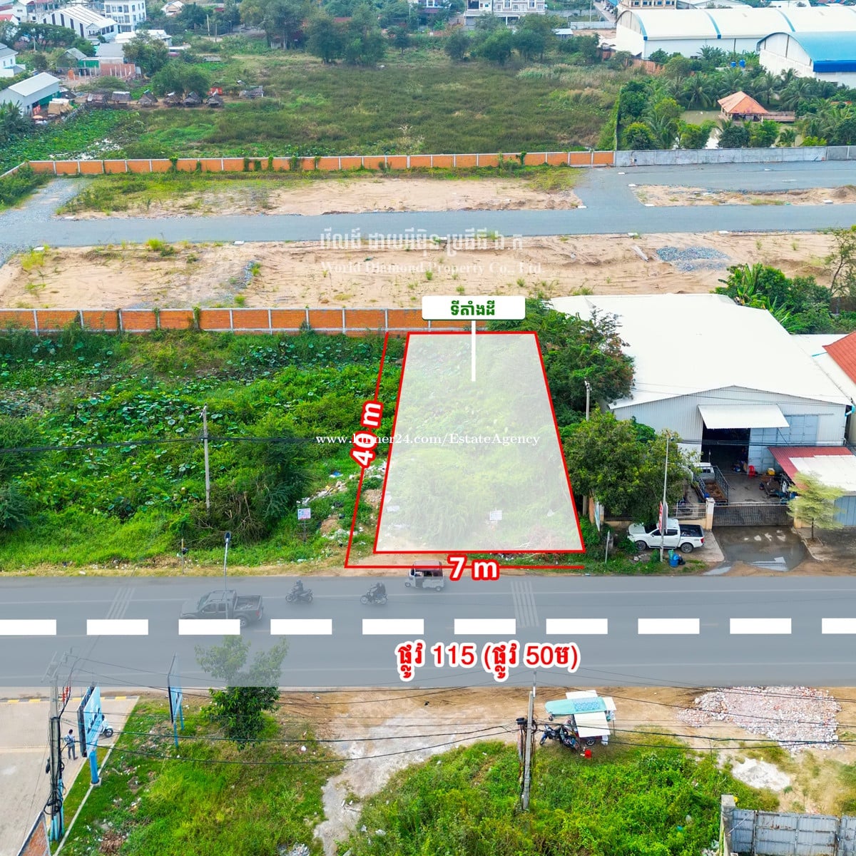ដីលក់ ប្រលានថ្មី ផ្លូវ115 ក្រុងតាខ្មៅ -តម្លៃ$179,000/ចរចារ -ទំហំ (7x30) -ផ្លូវ30 ☎️098232xxxClick To Call
