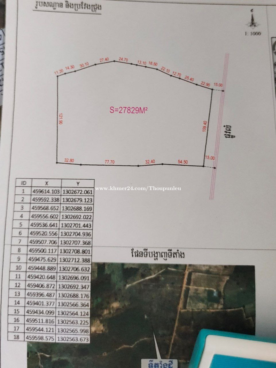 ដីលក់បន្ទាន់ នៅក្បែរផ្លូវជាតិអាស៊ានលេខ136 ចំងាយ16គីឡូម៉ែត្រពីផ្សារឧត្តុង្គ •តម្លៃ270000$ ទំហំ 27829ម៉ែត្រក្រឡា តម្លៃក្នុងមួយក្រឡាការ៉េ 10$ តម្លៃនេះអាចចុះទៀត • ប្រភេទដីរាងចតុកោណ100% ស្អាតខ្លាំងណាស់ •ដីនេះស្ថិតក្នុងភូមិអណ្តូងចំបក់ សង្កាត់វាលពង់ ក្រុងឧត្តុង្គ ខេត្តកំពង់ស្ពឺ •ស្ថិតនៅតំបន់មានសក្តានុពល មានគម្រោងដីឡូតិ៍ជាច្រើនដូចជា គម្រោងដីឡូតិ៍ឃុំបណ្ណាដែត •អ្នកទិញអាចស្នើធ្វើប្លង់រឹង •លេខទូរស័ព្ទទំនាក់ទំនង 089821xxxClick To Call •ទីតាំងដីក្នុងgoogle map : https://goo.gl/maps/jgjhBLPtkgqYdUtY7។ សូមអរគុណ។