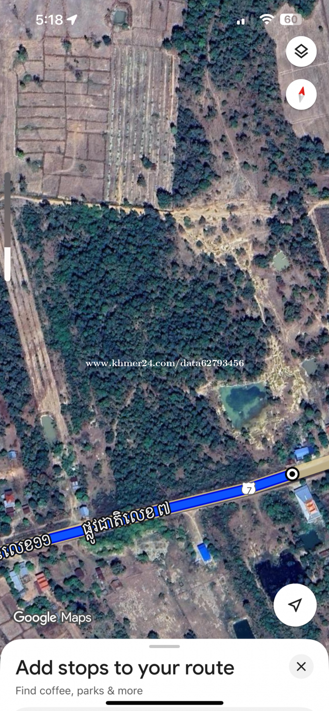 ដីលក់ក្បាលដី 230x400 ម៉ែត្រ ប្លង់រឹងសុទ្ធ 100% ក្បាលដីជាប់នឹងផ្លូវជាតិលេខ7 ( ក្រចេះ ស្ទឹងត្រែង ) តំលៃ 1ម៉ែត្រដើរ x 600$ 230ម៉ែត្រ x 600$ = 138,000$