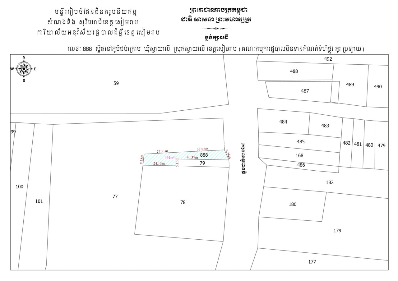ទីតាំងស្ថិតនៅទីរួមស្រុកស្វាយលើខេត្តសៀមរាបជិតផ្សាចាស់ ជាប់ដេប៉ូលក់គ្រឿងសំនង់ តារាងបាល់ទាត់ទីរួមស្រុក និង វិទ្យាល័យស្វាយលើ ជាប់ផ្លូវជាតិ64 ផ្លូវកៅស៊ូ ក្បាលដី 8,26m x 62m មានតូបលក់ដូស្រាប់ បើហាងសាឡន លក់ចាប់ហួយ លក់បាយម្ហូប បានទាំងអស់៕