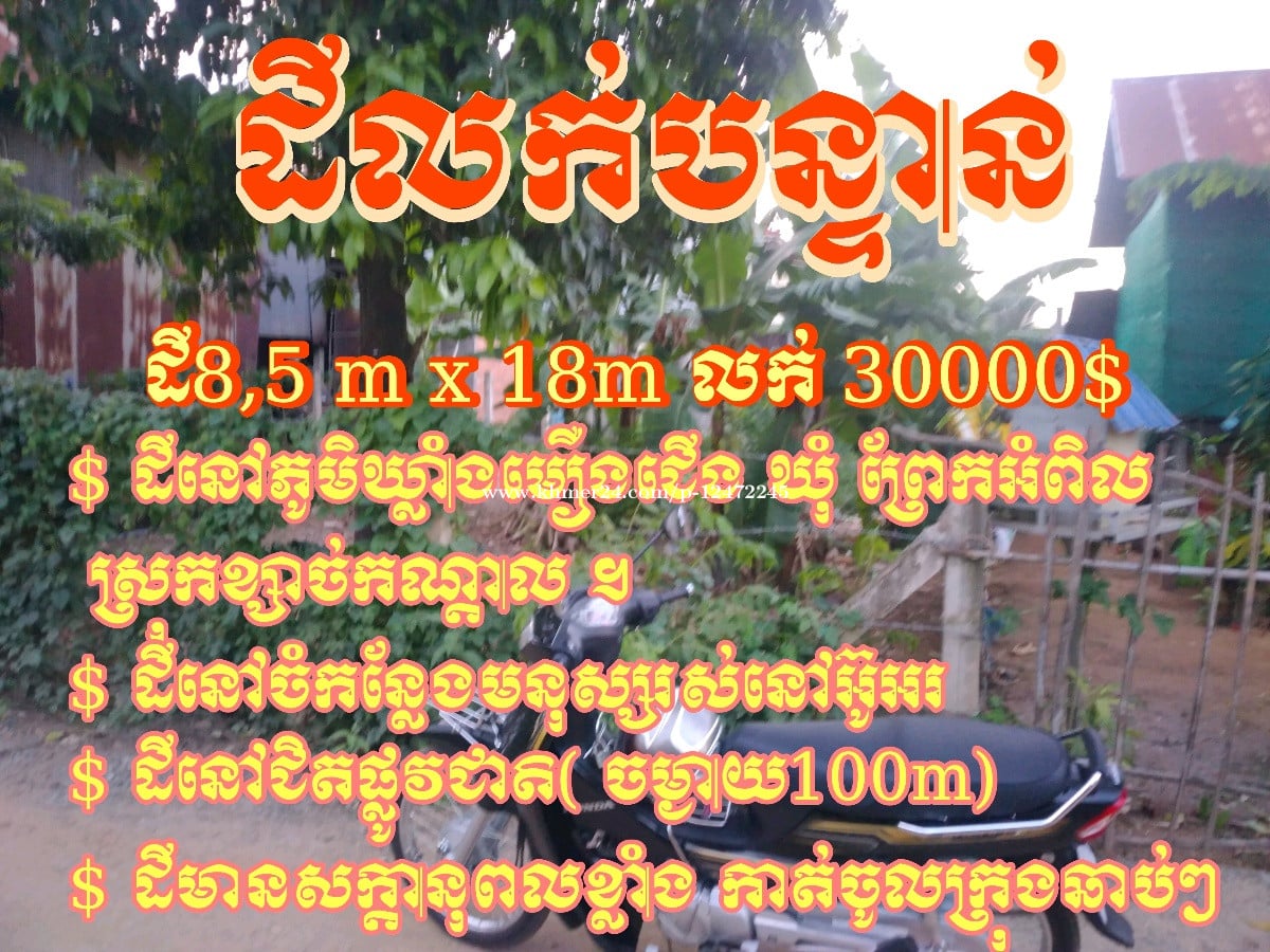 ដីលក់ប្រភេទដីភូមិ មានប្រជាពលរដ្ឋរស់នៅកុះករ ដី16m x 35m លក់85000$ចរចា៎ ដីមានទឹកភ្លើងរដ្ឋជាស្រេច ដីមានសក្ដានុពលខ្លាំងពេលស្ពានស្វាយជ្រុំសាងសង់រួច។ ⛽012472xxxClick To Call ; 010932xxxClick To Call