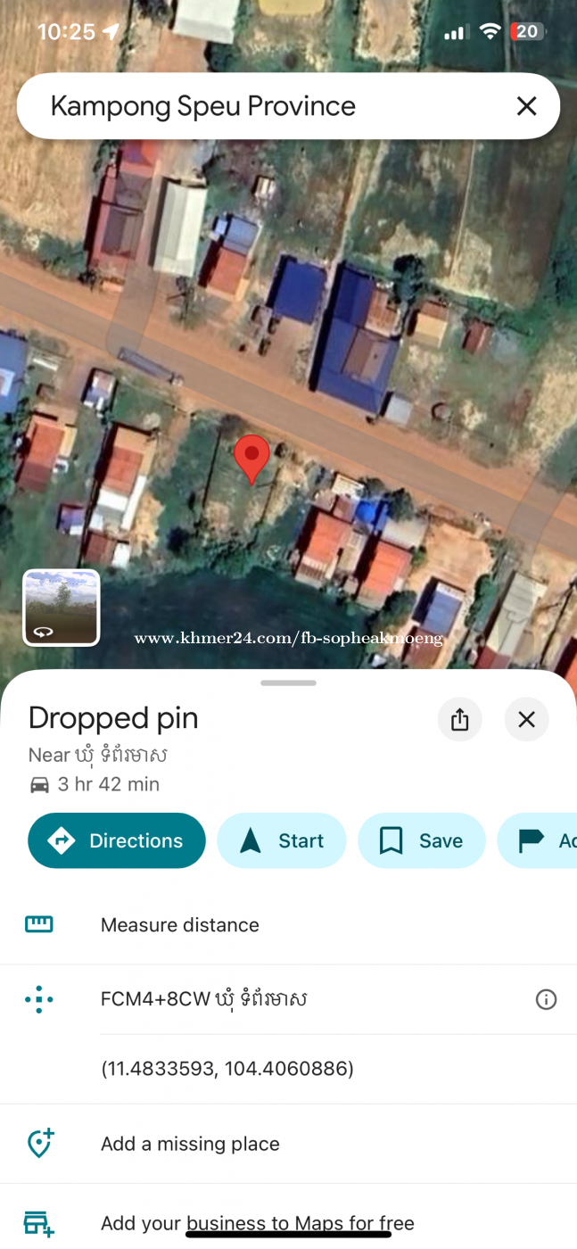 -ដីលក់ម្ចាស់ផ្ទាល់ ជាប់បណ្តោយផ្លូវកៅស៊ូ ជាតំបន់កំពុងមានការអភិវឌ្ឍន៍ និងសំបូររោងចក្រ។ - ចុះពីទីរួមខេត្តកំពង់ស្ពឺ ប្រមាណជាង១០គីឡូម៉ែត្រ។ -Tel: 093550xxxClick To Call 0887700xxxClick To Call