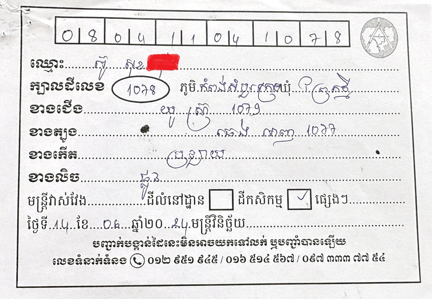 Contact Info: Please don't forget to mention that you found this ad on khmer24.com.