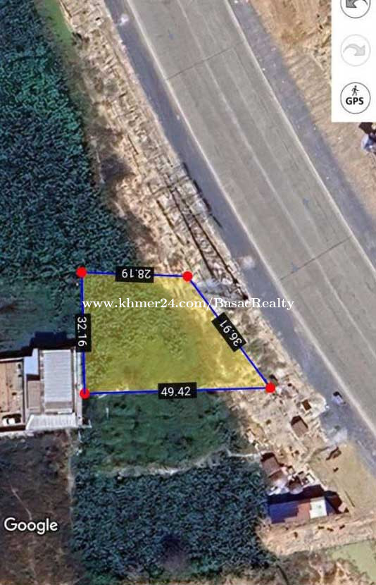 ដីលក់លើផ្លូវ80m ជិតព្រលានយន្តហោះថ្មី - តម្លៃលក់ : $650/m2 (ចរចា) - ទំហំដី : 36.91m x ម្ខាង28.19m ម្ខាង49.42m ក្រោយ32.16m - ទំហំក្នុងប្លង់ : 1,220m2