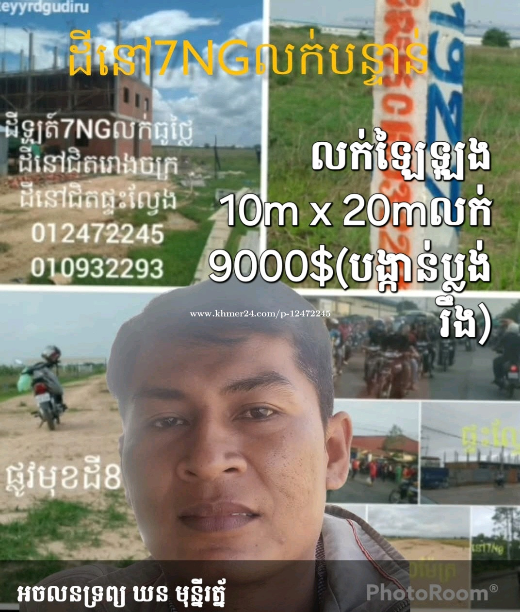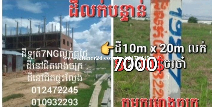÷ដីឡូត៍នៅ7NGលក់បន្ទាន់ខ្លាំ ÷ដី2ឡូត៍10m x 20m លក់1ឡូត៍ក៏លក់ដែរ (លក់បង្លាន់ដៃប្លង់រឹង) ដីនៅជិតអគារខារ៉ាអូខេ តែ100ម បើបងប្អូនចាប់អារម្មណ៍សូមទាក់ទងមកខ្ញុំបាទ 012472xxxClick To Call ; 010932xxxClick To Call