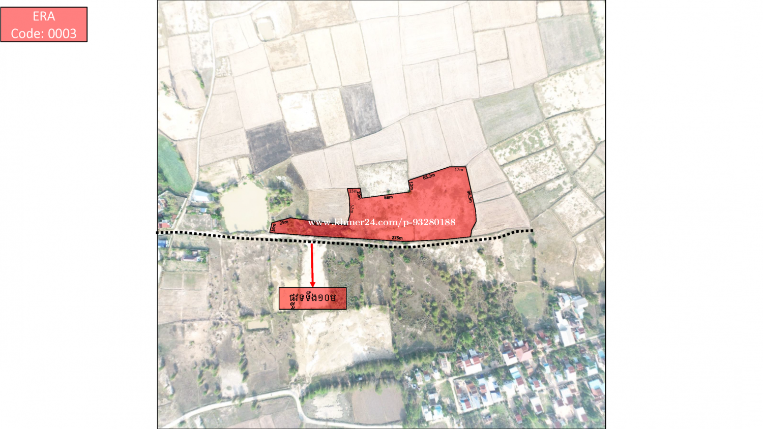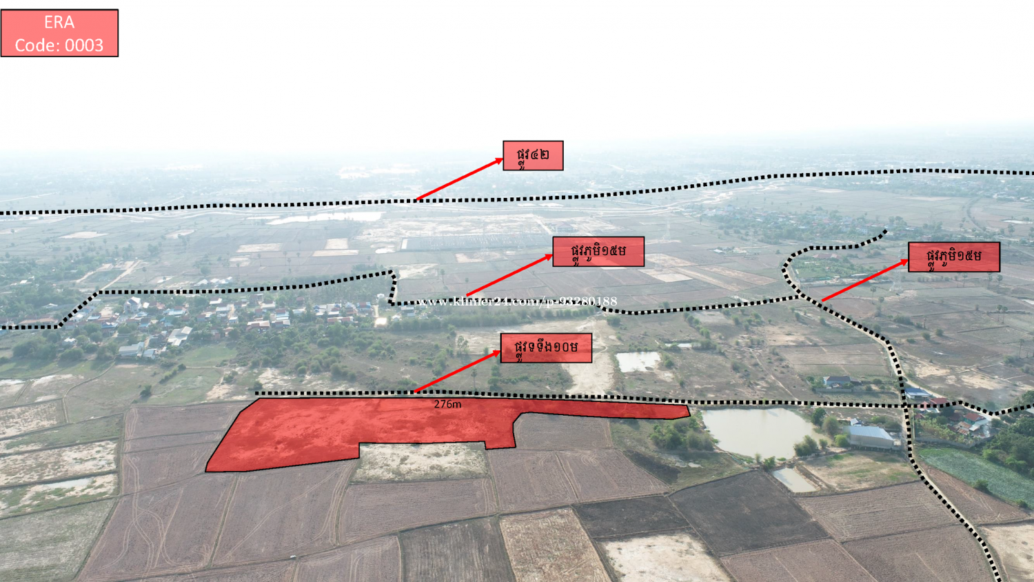 ERA Code:0003 ដីលក់ឡៃឡុង ស្ថិតក្នុងខណ្ឌកំបូល ទំហំដី ១,៥ ហត ក្បាលដីប្រវែង ២៧៦ ម ប្លង់រឹង ទំហំផ្លូវ ១០ ម តម្លៃ ៤០ ដុល្លា ចរចារ ៥,៦ គម ពី មហាវិថីឈ្នះៗ ក្បែរភូមិ ផ្សារ និង សាលារៀន 土地拍卖,位于干拉省甘布尔区 土地面积:1.5公顷 土地正面宽度:276米 硬卡产权(正式土地证) 道路宽度:10米 价格:每平方米40美元,可议价 距离胜利大道约5.6公里 靠近村庄、市场和学校 Map: https://maps.app.goo.gl/tSj965c5sTi45XUK6?g_st=com.google.maps.preview.copy Tel:011665xxxClick To Call/093280xxxClick To Call Telegram: https://t.me/ThouchChandara