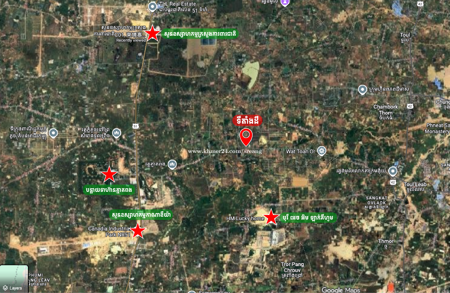 ដីស្អាត ដីល្អ លើផ្លូវធំតំបន់ឧស្សាហកម្ម ដីលក់ ឬជួល លើផ្លូវ៣០ម៉ែត្រផ្លូវកៅស៊ូរួចស្រេច - ដីជាប់រោងចក្រ - តំបន់ឧស្សាហកម្ម - ស្ថិតលើផ្លូវវត្តទាន់អរ 30mរឺផ្លូវបន្ទាយត្មាតពង ជិតតំបន់សេដ្ឋកិច្ចពិសេស OCIC និង សួនឧស្សាហកម្មក្រសួងការពារជាតិ C01 - ដីស្អាត ក្បាល 25m x ជម្រៅ 50m - តម្លៃ $140/1ការ៉េ ចរចារ *** ជួល 100$ ក្នុង១ខែ