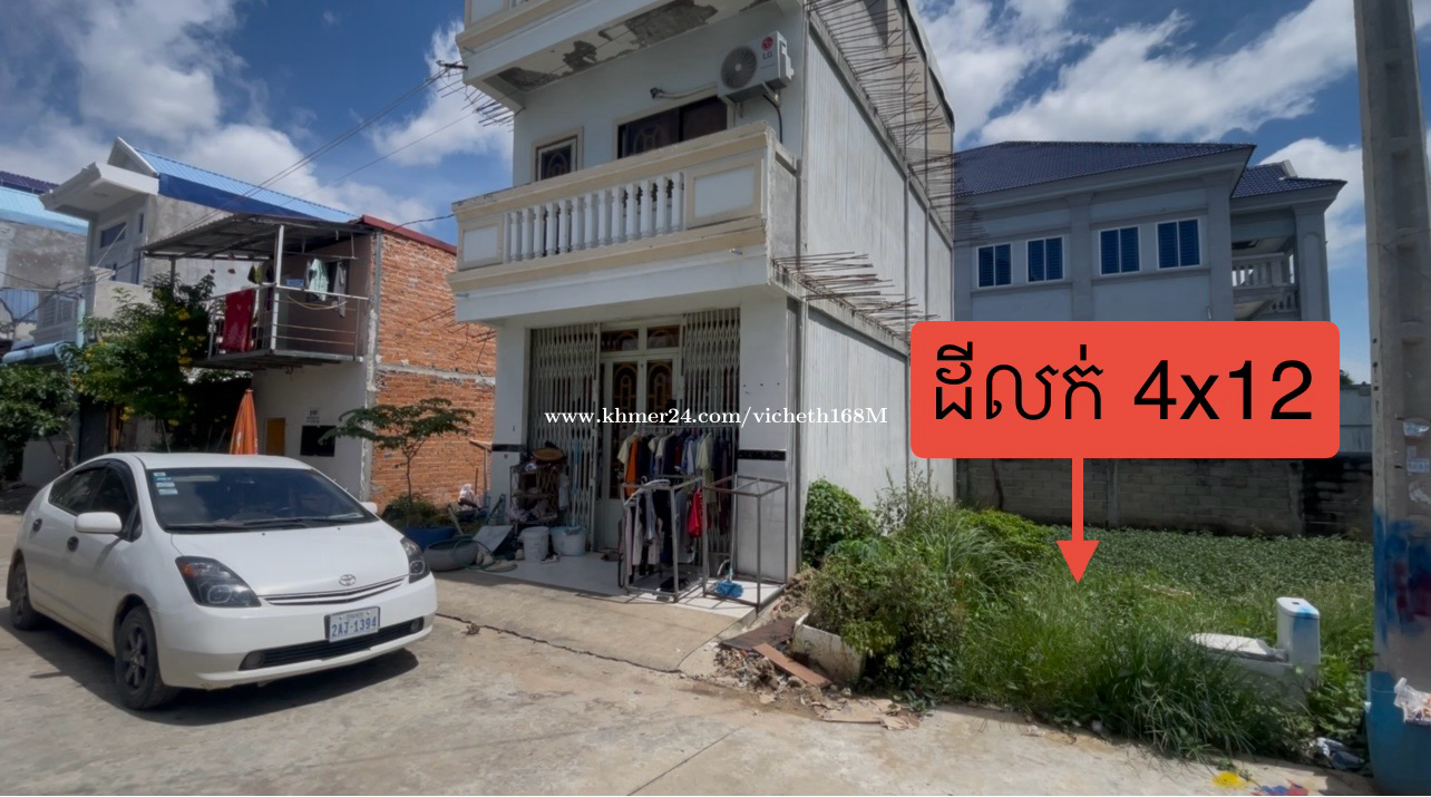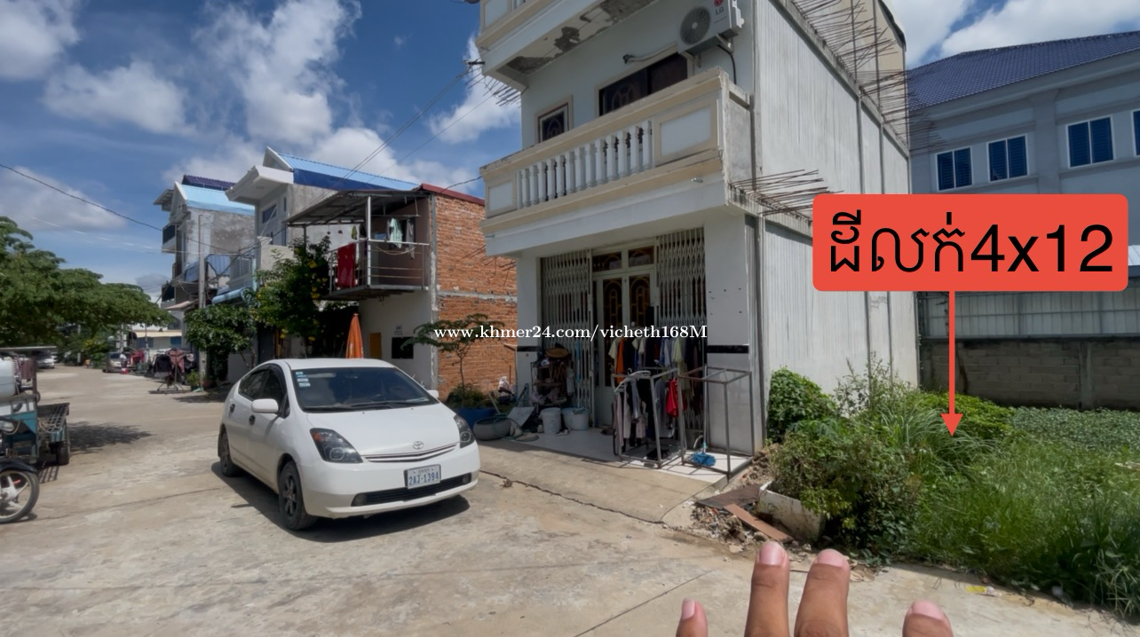 ដីលក់ម្ចាស់ផ្ទាល់ នៅក្បែរវត្តឈូកវ៉ា 4x12 ប្លង់រឹង 098456xxxClick To Call-012456xxxClick To Call
