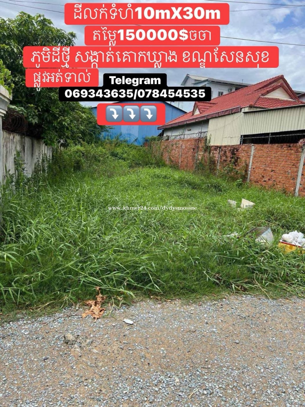 ដីលក់ទំហំ10mX30m តម្លៃ150000$ចចា (ទីតាំងខាងកេីតផ្សារឈូកមាស) ភូមិថ្មី សង្កាត់គោកឃ្លាង ខណ្ឌសែនសុខ (ផ្លូវអត់ទាល់) Telegram 📲069343xxxClick To Call/078454xxxClick To Call