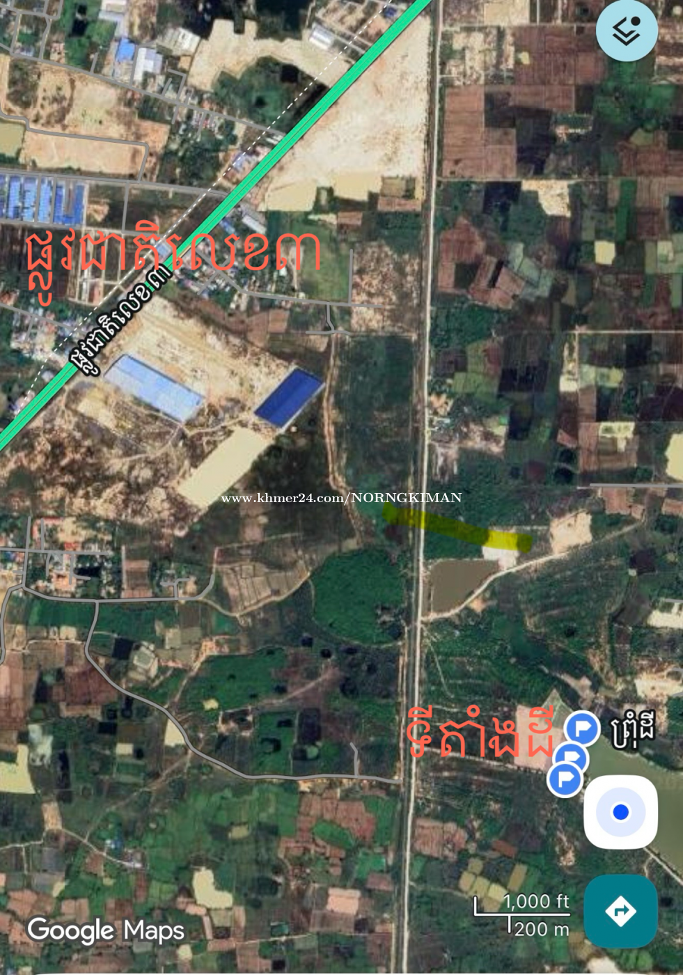 ដីលក់ម្ចាស់ផ្ទាល់ ប្រហែល 18km ពីចោមចៅ ចុះពីផ្លូវជាតិលេខ៣ ប្រហែល២ km តាមផ្លូវរថភ្លេីង ល្អសម្រាប់បេីករោងចក្រ តម្លៃ 35$/m2 ចរចារ លេខទំនាក់ទំនង 085735xxxClick To Call