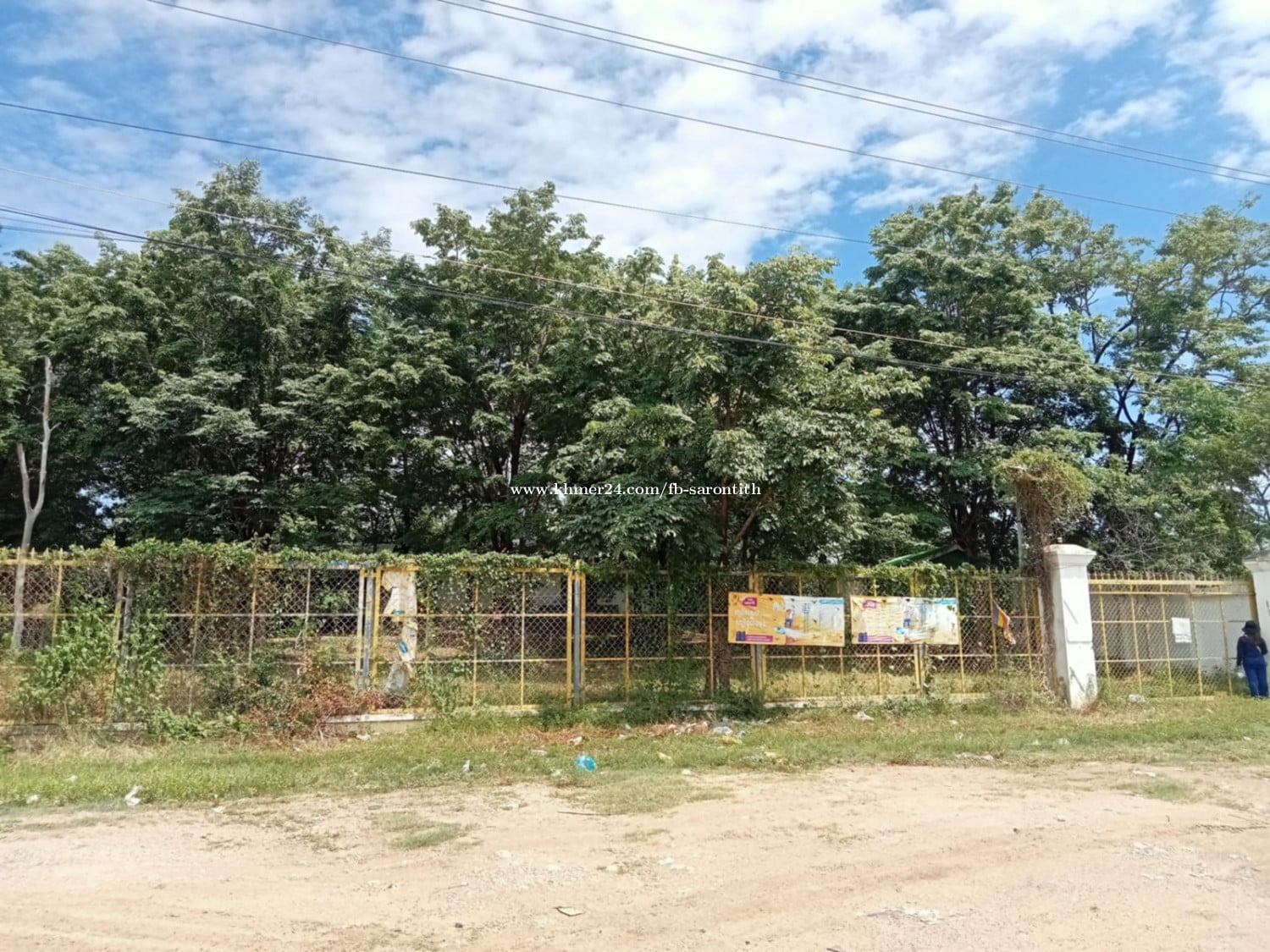 ដីជាប់ផ្លូវជាតិ បាត់ដំបង-បៃលិន ក្បាលដី៤២មX 90ម មានរបងជុំវិញ មានផ្ទះថ្ម១ ទឹកភ្លើង ដើមធ្នង់ ប្លង់រឹង ជិតធនាគា ផ្សារដំណាក់ស្តៅ