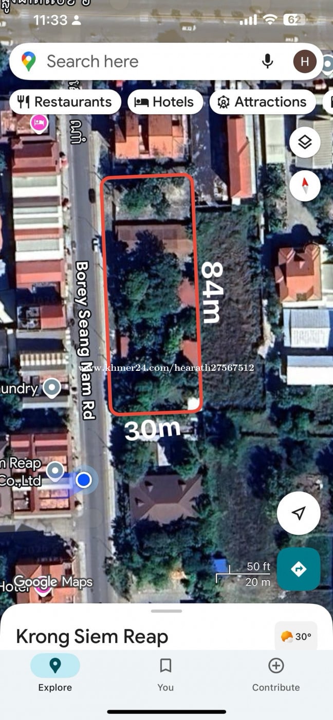 ដីលក់ ចុះពីផ្លូវជាតិលេខ6 30ម៉ែត្រ កុ្នងបុរីសៀងណាំ សៀមរាប តម្លៃចរចាបាន telegram0964022xxxClick To Call