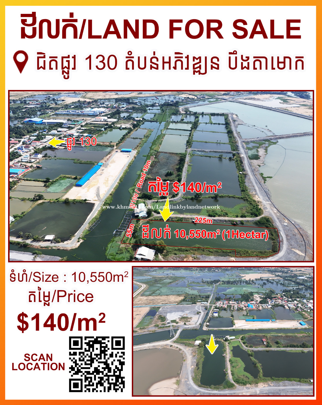 ដីលក់ជិតផ្លូវ 130 តំបន់អភិវឌ្ឍន បឹងតាមោក *ទំហំដី: 55មx225ម សរុបប្លង់រឹង 10,550 m² *តម្លៃលក់: $140/m² (ចរចា) *ទីតាំង៖ ភូមិ សំរោងត្បូង សង្កាត់សំរោង ខណ្ឌព្រែកភ្នៅ ក្រុងភ្នំពេញ 👉 ដីនេះ ល្អសម្រាប់ សង់ផ្ទះវីឡា, ធ្វើឃ្លាំង ឬ ទិញទុកចំណេញ ស្ថិតក្នុងតំបន់ អភិវឌ្ឍន បឹងតាមោក សម្រាប់ពត៏មានលម្អិតសូមទូរស័ព្ទមកកាន់យើង ☎️ 077975xxxClick To Call 📩តេឡេក្រាម: https://t.me/TolaPor ------------------------------------------------ #Land for SALE *Land size: 55m x 225m Hard title 10,550 m² *Sale price: $140/m² (Negotiable) *Location: Songkat Samrong, Khan Prek Phnov, Phnom Penh. For more details information, please call us via ☎️ 077975xxxClick To Call Location : https://maps.app.goo.gl/VubQ96os2iaAHMUW8