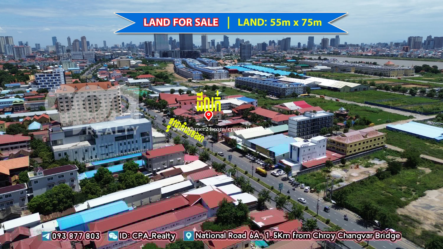⭕️ដីលក់/ជួលផ្លូវជាតិ៦អា 💢ទំហំដី: 55m x 75m 💢តម្លៃលក់: $2,200/m2 ចរចារ 💢តម្លៃជួល: $11,000/1ខែ ចរចារ 📍ទីតាំង: ផ្លូវជាតិលេខ៦អា, ១.៥គីឡូម៉ែត្រពីស្ពានជ្រោយចង្វារ 🆔12405 𝙩𝙚𝙡𝙚𝙜𝙧𝙖𝙢: https://t.me/cparealtors 𝙬𝙚𝙘𝙝𝙖𝙩 𝙄𝘿: CPA_Realty 𝙩𝙚𝙡𝙚𝙜𝙧𝙖𝙢 𝙘𝙝𝙖𝙣𝙣𝙚𝙡: https://t.me/cparealty