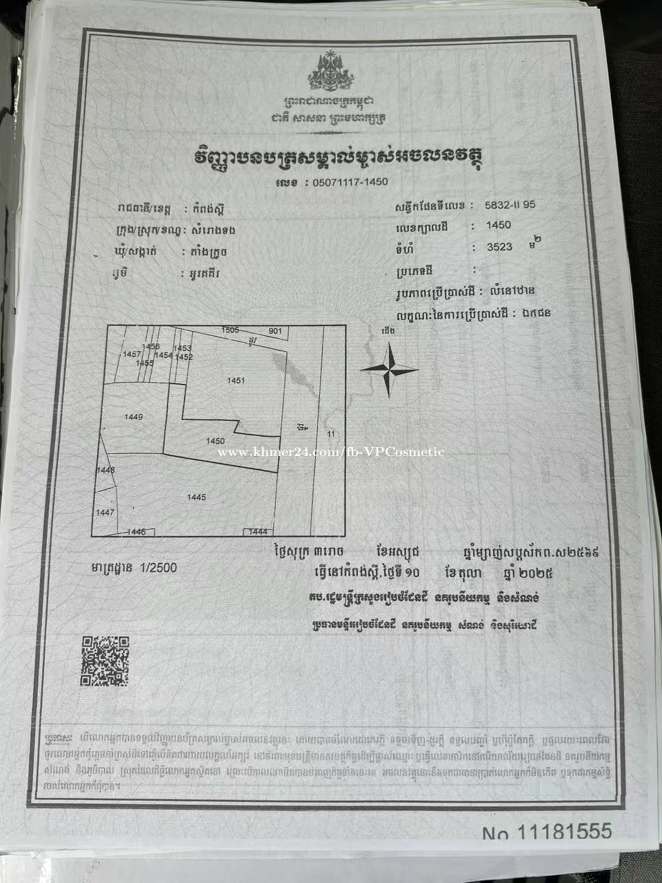 Location: នៅតំបន់រោចក្រ ជាប់ផ្លូវបេតុង ចុះពីផ្លូវជាតិលេខ44 ចម្ងាយ ៥០ម៉ែត្រ តម្លៃក្រោមទីផ្សារ Tang Krouch, Samraong Tong, Kampong Speu
