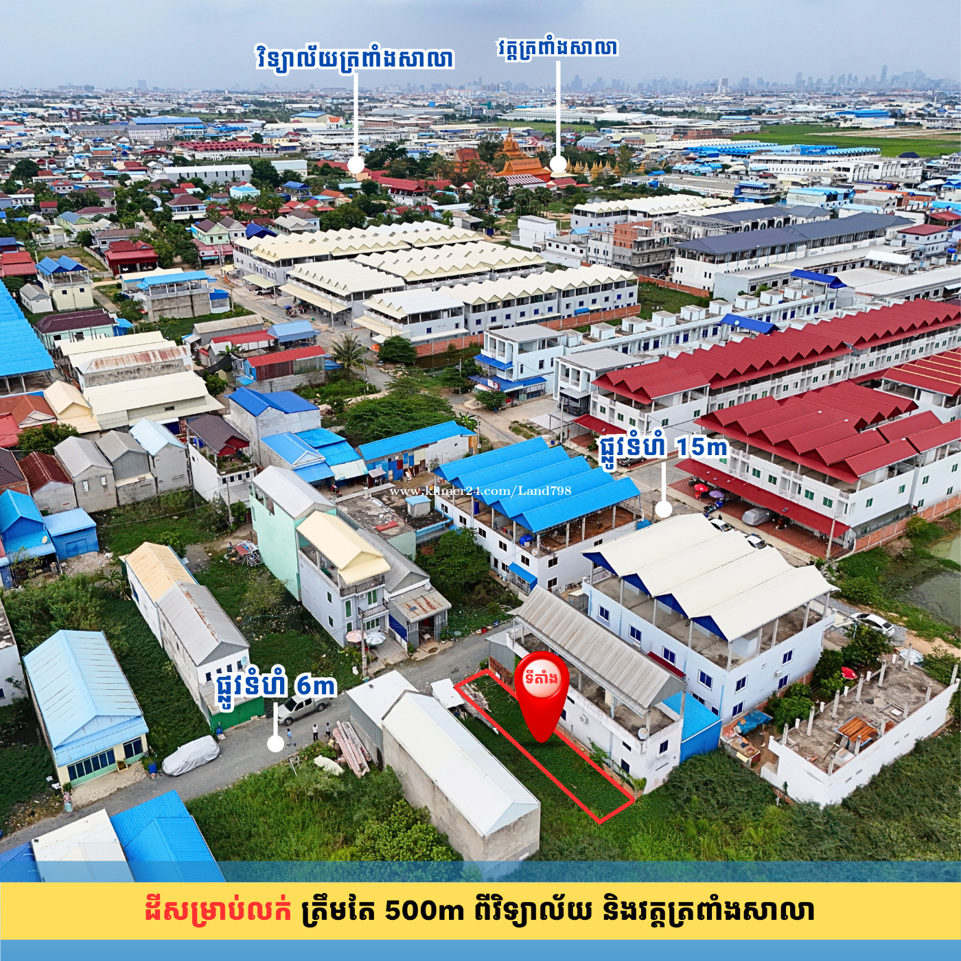 ដីលក់ ត្រឹមតែ 500m ពីវិទ្យាល័យ និងវត្តត្រពាំងសាលា សង្កាត់ពងទឹក ខណ្ឌដង្កោ . ទំហំដី 5m x 20m = 100m²(ក្នុងប្លង់) . ដី បែរមុខទៅទិសខាងជើង * កម្មសិទ្ធិប្លង់ ទន់រាជធានី (ចរចាត្រូវកាត់ប្លង់ជូន) . ផ្លូវទំហំ 6m ចេញចូលមិនទាន់ (អ៊ូអរ) >> ទីតាំង ភូមិត្រពាំងសាលា សង្កាត់ពងទឹក ខណ្ឌដង្កោ រាជធានីភ្នំពេញ។ . 500m ពីវត្តត្រពាំងសាលា * តម្លៃ $18,500 ចរចា ។ . យើងខ្ញុំមានសេវាធនាគារល្អៗជូន បើសិនជាអតិថិជនត្រូវការ។ 💁សំរាប់ព័ត៌មានលំអិតផ្សេងៗ៖ 📲092765xxxClick To Call /Cellcard 📲0967000xxxClick To Call /Smart 📲098765xxxClick To Call /Smart -Telegram ផ្ទាល់ខ្លួន https://t.me/phanna798 -Telegram Channel https://t.me/Land798 -Facebook page https://web.facebook.com/Land798