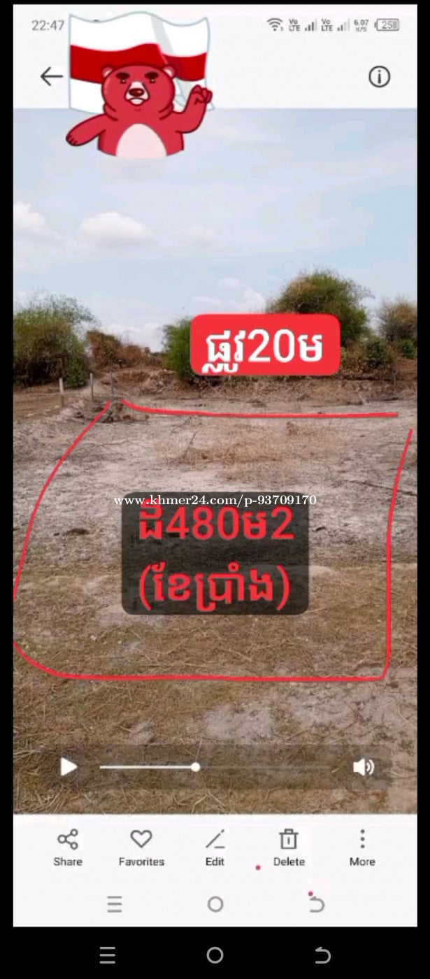 👉ដីផ្ទាល់ខ្លួន ត្រូវការលក់ធូៗ 👉ដីជាប់ផ្លូវគំរោង20ម (រដ្ធឈូសឆាយរួច តំលៃនឹងឡើងទ្វេ) 👉ទំហំ 480m2 👉ប្លង់រឹង 👉តំលៃ15000$ 👉ទីតាំង https://goo.gl/maps/wwYhAZZBaT58K2AX8?g_st=afm 👉តេឡេក្រាម 012276xxxClick To Call