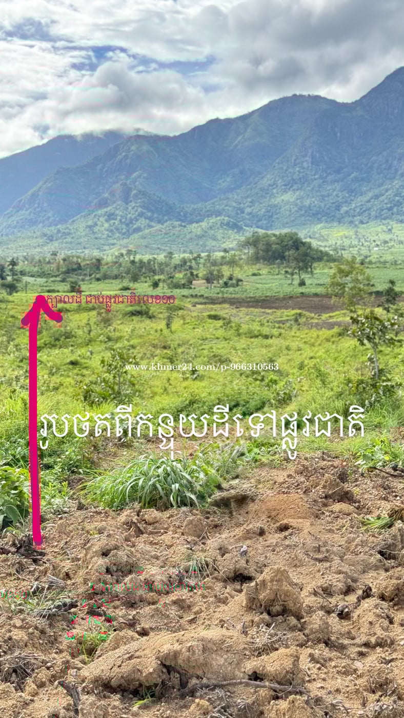 ដីនៅជាប់ផ្លូវជាតិលេខ១០ ពីស្រុកវាលវែងទៅ ខេត្តបាត់ដំបង។ ទីតាំងល្អ ឆៀងភ្នំទំព័រ ទេសភាពភ្នំស្អាត បើកហាងកាហ្វេឬរីស៊តក៏បាន ចម្ងាយពីរវង្វងមូលស្រុកវាលវែង (រង្វងមូលដំរី) ប្រហែល២គីឡូ ដល់ទីតាំងដី។ បងប្អូនដែលមានតម្រូវការ ឬទិញទុកចំណេញថ្ងៃក្រោយ អាចទំនាក់ទំនងបាន។