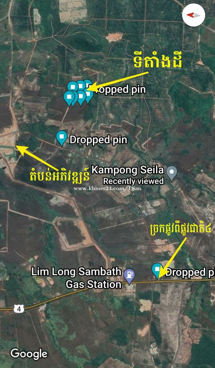 ដីលក់ 2.96$/m2 កំពង់សោម (English below) ទំហំ 33,833m2 ប្លង់ស្រុក (កំពុងចុះជាប្រព័ន្ធ) ទីតាំង ៖ ភូមិគីរីវ័ន្ត ឃុំស្ទឹងឆាយ ស្រុកកំពង់សីលា ខេត្តព្រះសីហនុ ចុះពីផ្លូវជាតិ4 ចំងាយ 2400ម៉ែត្(ផ្លូវគ្រួសក្រហម ជាប្រជុំជនឃុំ ចូលទៅក្បែរតំបន់អភិវឌ្ឍន៍ គម្រោងពុះឡូតិ៍ និងផ្លូវល្បឿនលឿន។ (10°59'54.0"N 103°48'48.0"E) https://goo.gl/maps/c7kLytu5EYjTNheL6 Land for Sale, 2.96$/m2, at Kompongsom. Total size : 33,833m2 #StoeungChhay , KompongSeyLa, KPS Location : https://goo.gl/maps/c7kLytu5EYjTNheL6