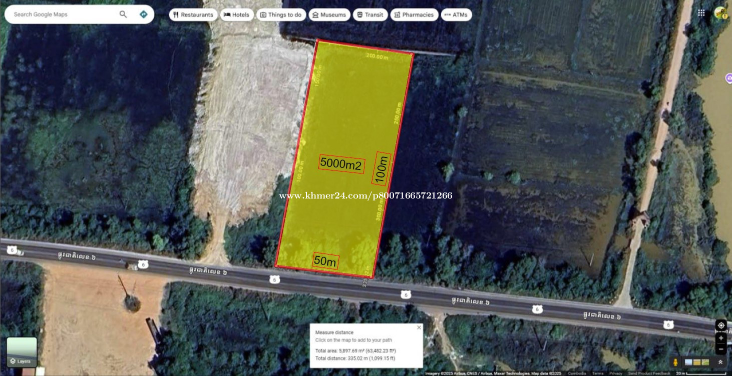 ដីលក់ បន្ទាន់ 1ម៉ែត្រការ៉េ= 56$ ចចារ ទំហំដី 50mx90m ប្លង់រឹង ដីធំ អាចធ្វើការាស់សាំងបាន ចំងាយពីភ្លើងស្តុប ស្រុកព្រះនេត្រព្រះ 1300ម៉ែត្រ នៅលើផ្លូវជាតិលេខ6 ទីតាំង: https://maps.app.goo.gl/yPyH8SJME54Ndmrk9 ទំនាក់ទំនង: 087506xxxClick To Call 085667xxxClick To Call