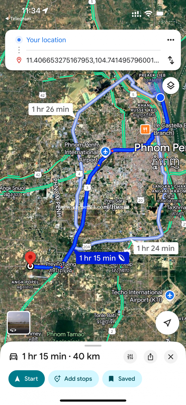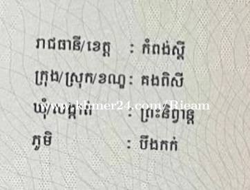 ដីលក់ ប្រញាប់ ៦៦ដុល្លារក្នុងមួយការេ ដីកែង ផ្លូវមុខក្រោយ ពីភ្នំពេញតាមផ្លូវជាតិលេខ៣រួចបត់ស្តាំដល់ដី។ (ពីភ្នំពេញ 22 គីឡូដល់ដី) កាត់ប្លង់រឹងជូន ទីតាំងដី (11.4081355, 104.7409530) នាំជួបម្ចាស់ផ្ទាល់ បញ្ជាក់ តម្លៃខាងលើគឺលក់មិនកាត់ថ្លៃ។ 土地出售,急售,每平方米66美元,轉角地塊,前後道路,從金邊出發,沿3號國道右轉即可到達。 (從金邊到該地塊22公里) 已辦理硬產權證 土地位置(11.4081355, 104.7409530) 請親自與業主見面 註:以上價格為出售價格,無折扣。