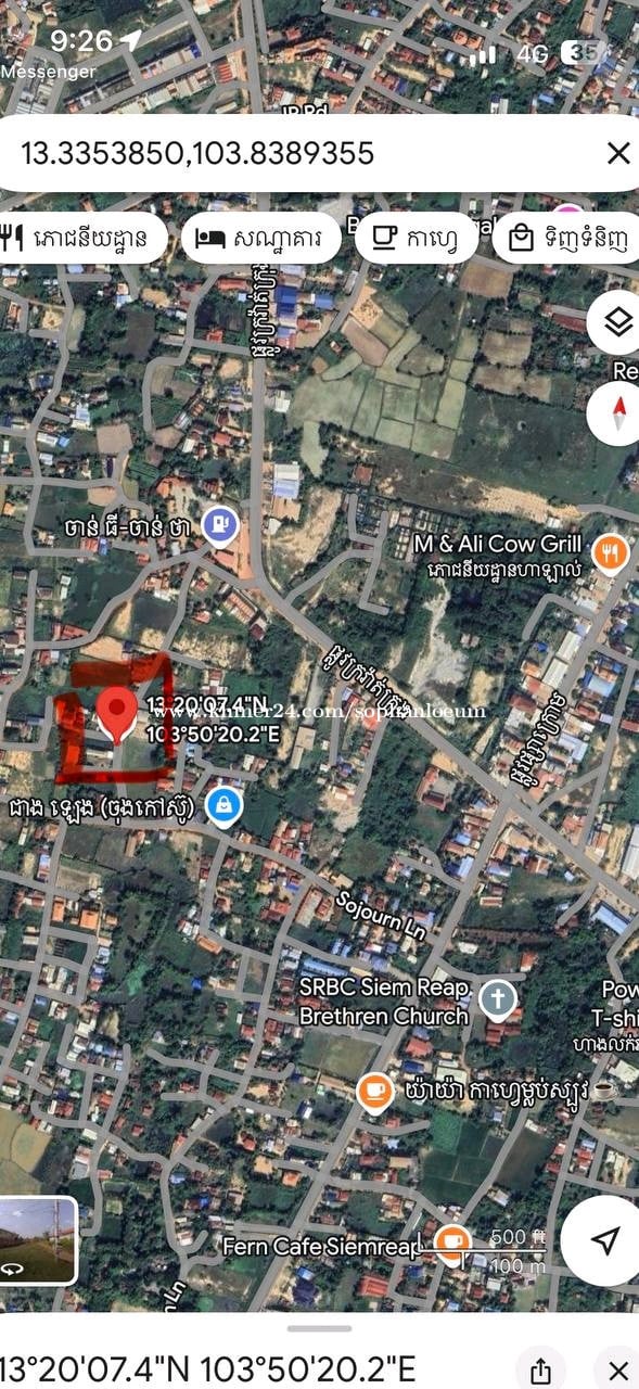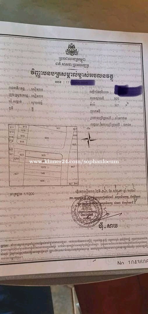សំរាប់លោក-លោកស្រីចង់បានដីនៅក្បែរក្រវ៉ាត់ក្រុងទី១ ក្រុងសៀមរាប យើងនឹង ក្នុងខេត្តសៀមរាប ដីលក់ទំហំសរុប 321m2 ដែលមានក្បាលដី 7.5mx 44m ដីជាប់ផ្លូវពីរ ផ្លូវខាងមុខដីទំហំ10 ម៉ែត្រ និងចំហៀង8ម៉ែត្រជាប់ផ្លូវធ្លុះ ដីលក់ក្នុងតម្លៃ 46000$ (ចរចាបាន) ប្លង់រឹង ដីស្ថិតក្នុងភូមិថ្មី សង្កាត់ស្វាយដង្គុំ ក្រុងសៀមរាប ខេត្តសៀមរាប ទំនាក់ទំនងតាមលេខទូរស័ព្ទ 066904xxxClick To Call/092223xxxClick To Call Cellcard Land for sale 7.5*44 price 46000$.