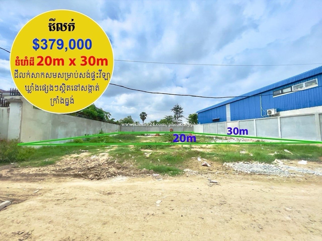 📢ដីលក់បន្ទាន់ ជិតចំការព្រីង 📍ស្ថិតនៅចំងាយប្រហែល 200ម៉ែត្រ ពីផ្លូវឧកញ៉ាទ្រីហេង ក្បែរបុរី វ៉ារីណា - តម្លៃលក់ : $379,000 (ចរចា) - ទំហំ : 20m x 30m (577m2) - ចាក់ដីខ្ពស់ ហើយមានរបងស្រាប់ - ទីតាំង : ស្ថិតក្នុងសង្កាត់ក្រាំងធ្នង់ ខណ្ឌសែនសុខ 📞 089577xxxClick To Call/ 016651xxxClick To Call https://t.me/phal_pheakdey_realtor