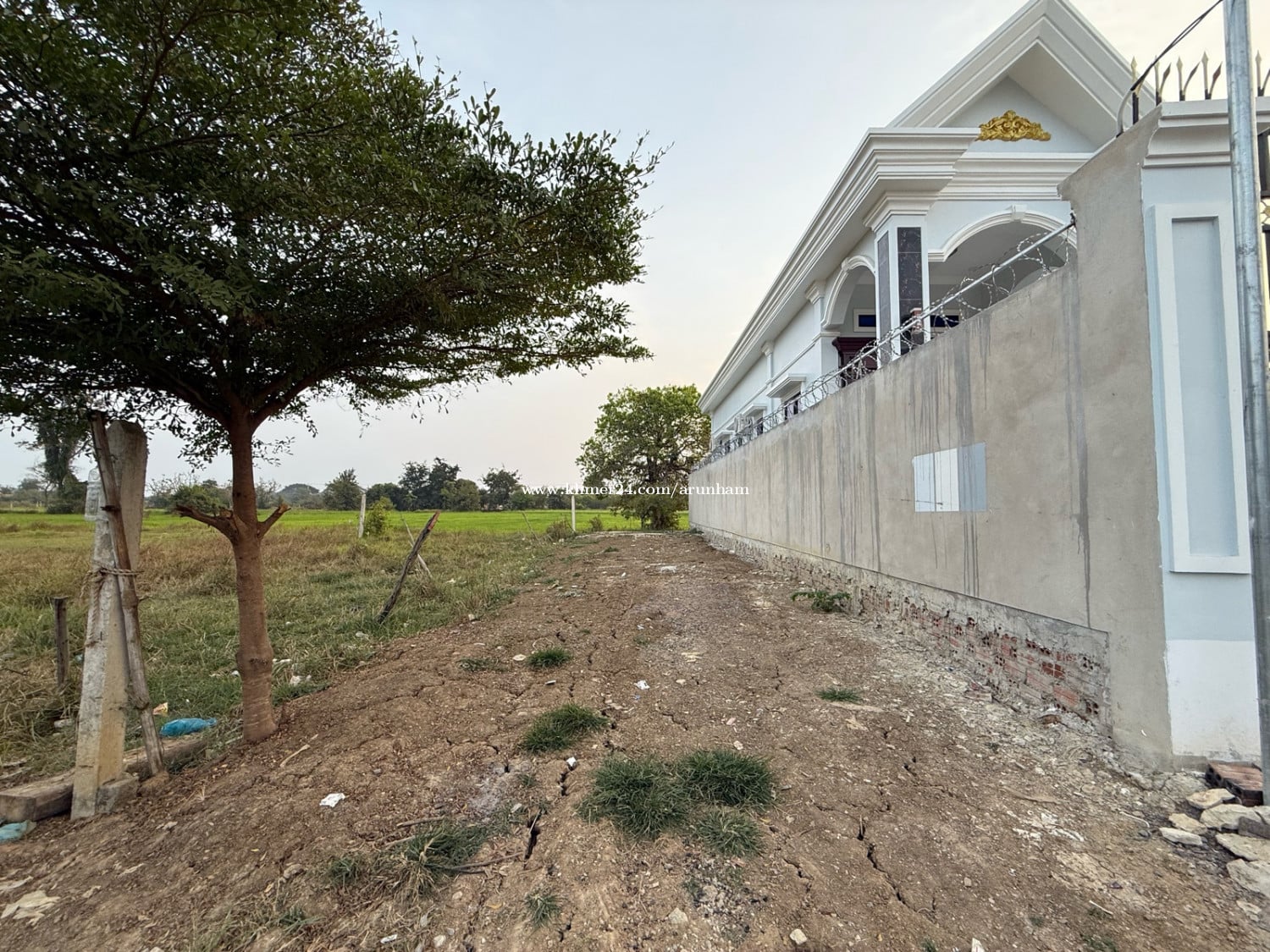 ដីលំនៅដ្ឋានស្ថិតនៅម្តុំស្រែប្រាំង ជិតស្រះឈូក ទំហំ ៥គុណ២០ សល់ក្រោយ៥ម៉ែត្រ ប្លង់រឹង ដីមិនលិចទឹក ទឹកភ្លើងរដ្ឋ ជាប់ផ្ទះវីឡាមានគេរស់នៅស្រាប់