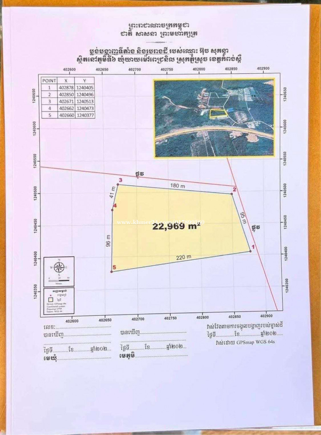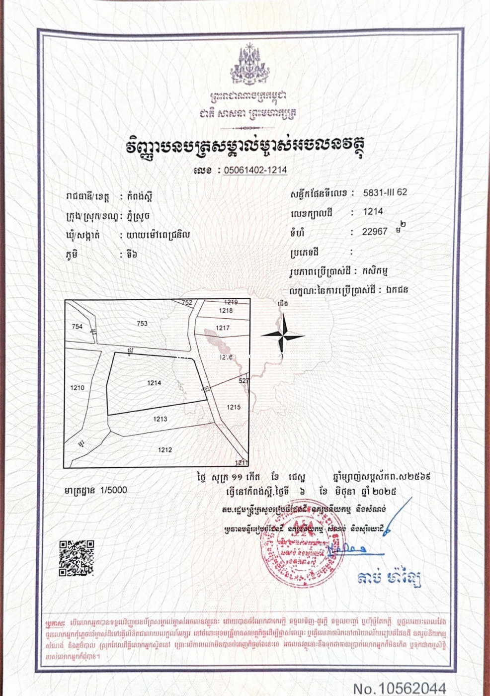 ដីលក់ ទំហំ 2.2 ហិកតា ដីសម្រាប់ធ្វើចំការ ឬកសិកម្ម ចិញ្ចឹមសត្វ ។ល។ ដីកែង ផ្លូវមុខ ផ្លូវចំហៀង ខាងក្រោយអូរ ទីតាំងស្ថិតនៅភូមិ6 ឃុំយាយម៉ៅពេជ្រនិល ស្រុកភ្នំស្រួច ខេត្តកំពង់ស្ពឺ ក្បែរផ្លូវល្បឿនលឿន ភ្នំពេញ ក្រុងព្រះសីហនុ លក់តម្លៃ 1m2 = $10 (ចរចា) ដីប្លង់រឹង។ ទំនាក់ទំនង: ☎️ 070899xxxClick To Call (តេលេក្រាម) ☎️ 017899xxxClick To Call