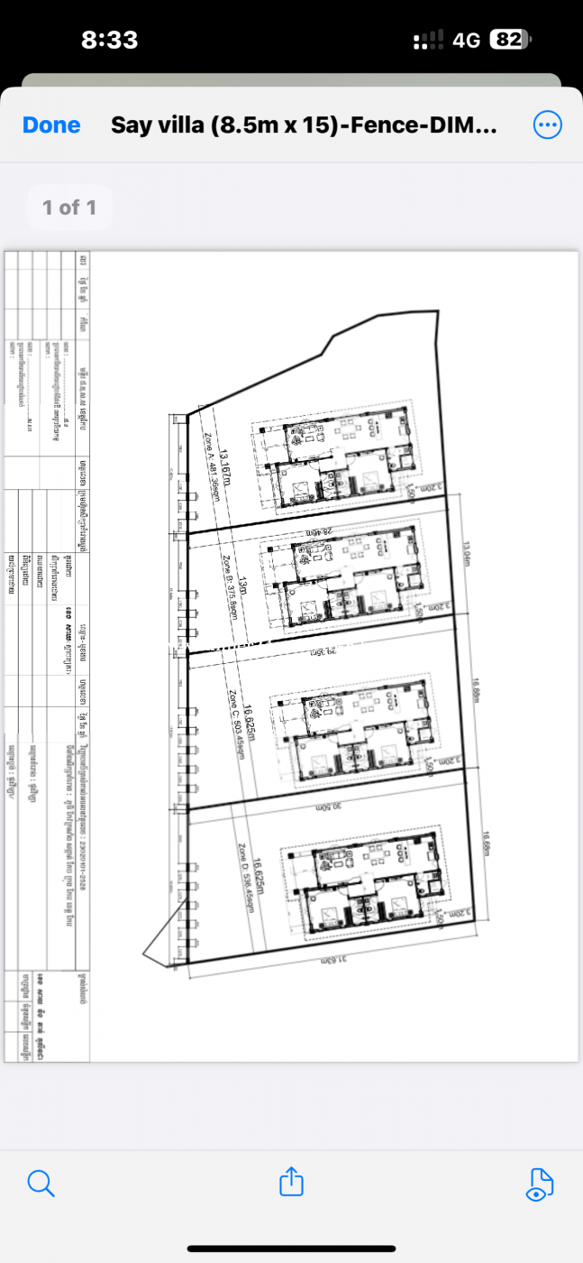 ដីល្អសំរាប់សាងសង់ផ្ទះលំហែរ Zone A = 481m2 = 38480$ Zone B = 375m2 = 30000$ Zone C = 503m2 = 40240$ Zone D = 536m2 = 42880$