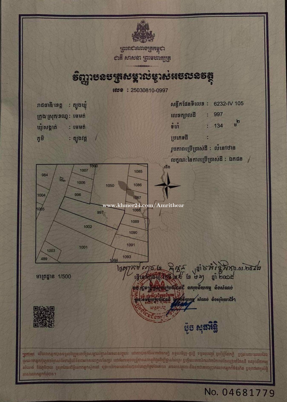 👉 ដីលំនៅដ្ឋានលក់ធូរថ្លៃ តែ10500$ ✅ ទំហំដី: 5m x 24m (ប្លង់រឹង100%) 👍 ទីតាំង នៅស្រុកមេមត់ ខេត្តត្បូងឃ្មុំ តំបន់ទីប្រជុំជន នៅជិតផ្លូវជាតិ និងផ្សារ! ☎️ Tel: 010336xxxClick To Call / 017336xxxClick To Call
