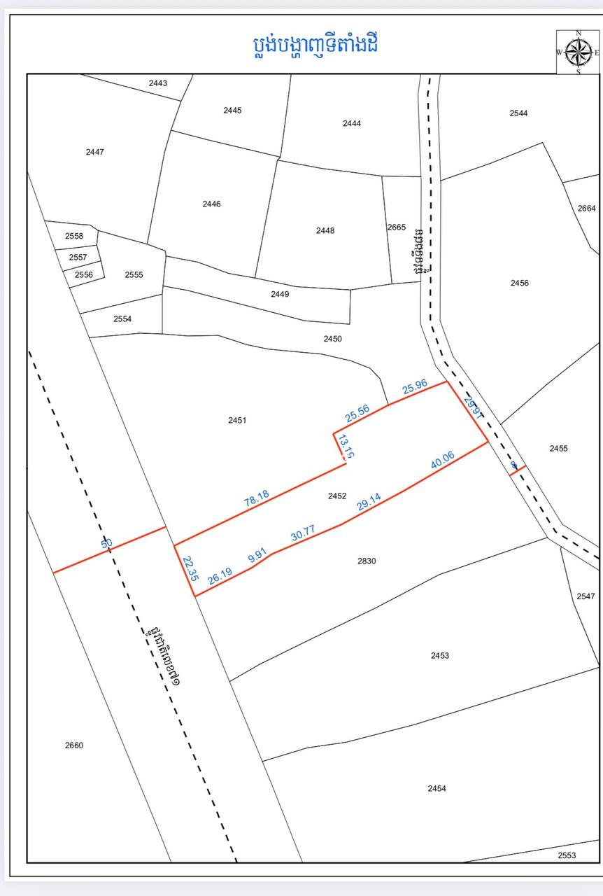 📢 ឱកាសល្អ! ដីលក់បន្ទាន់ ប្លង់រឹង ទីតាំងល្អជាប់ផ្លូវកៅស៊ូ ម្ចាស់ផ្ទាល់ត្រូវការលក់ដីដែលមានសក្តានុពលខ្លាំង ស្ថិតក្នុងតំបន់កំពុងអភិវឌ្ឍន៍ ផ្លូវជាតិលេខ៧១ ៖ • 📍 ទីតាំង៖ ភូមិយាយទៀង ឃុំបល្ល័ង្ក ស្រុកបារាយណ៍ ខេត្តកំពង់ធំ។ • 📏 ទំហំដី៖ 22.35m x 136.07m (សរុប 3,459m^2)។ • 💰 តម្លៃលក់៖ 55$/m^2 (តម្លៃសរុប 179,868$) – អាចចរចាបាន។ • 🛣️ លក្ខណៈពិសេស៖ * ដីជាប់ផ្លូវកៅស៊ូធំ ទល់មុខនឹងរោងចក្រក្ក្តារបន្ទះ ងាយស្រួលធ្វើដំណើរ និងដឹកជញ្ជូន។ • មានប្រព័ន្ធទឹក ភ្លើងរដ្ឋដល់ទីតាំងដី។ • ស័ក្តិសមសម្រាប់សង់ឃ្លាំង ផ្ទះត្រចៀកកាំ ការ៉ាស់សាំង ដាំដំនាំ ទុរ៉េន ឬទិញទុកចំណេញ។ 📞 សម្រាប់ព័ត៌មានបន្ថែម ឬទៅមើលទីតាំងផ្ទាល់៖ • លេខទូរស័ព្ទ៖ [012998xxxClick To Call]☎️ • តេឡេក្រាម (Telegram) 0978882xxxClick To Call https://maps.app.goo.gl/VBkrnWCqvPko95c69?g_st=ic 📝 សំរាប់អ្នកនាំម៉ូយមកទិញជូន 3%
