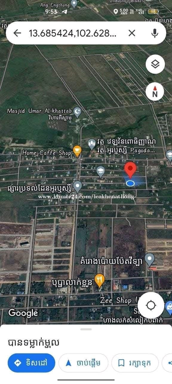 ទំហំ 20m x 30m ទីតាំងជិត ផ្សារ សាលារៀន តំលៃ 2xxxx $ ចចារ https://maps.app.goo.gl/swFWWcR2dvD9ghYB9?g_st=ic ពត៌មានបន្ថែមអាចទាក់ទងតេឡេក្រាម https://t.me/LeakhenaTH