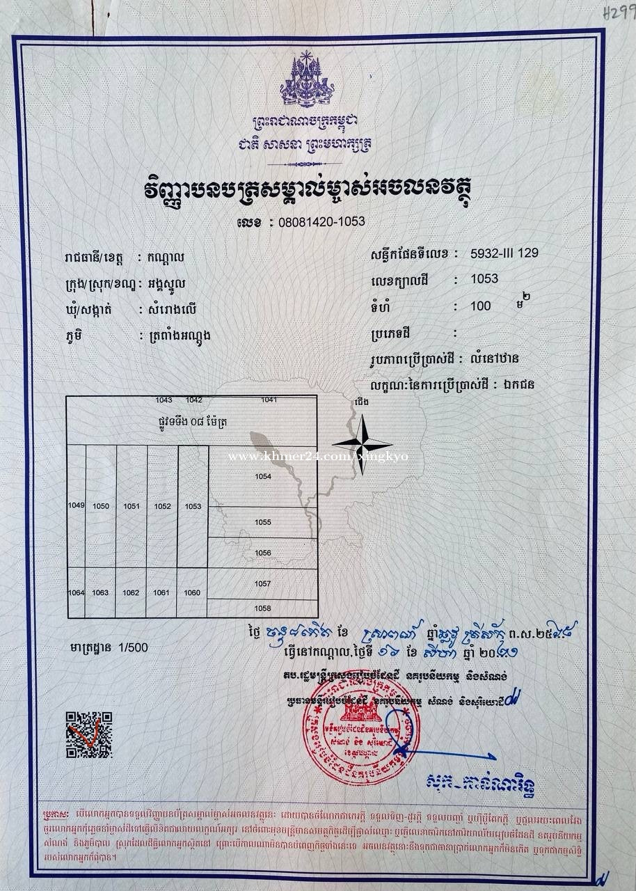 ដីល្អប្លង់រឹងអាចសាងសង់ផ្ទះរស់នៅបានជាប់បុរីHM Lucky Home