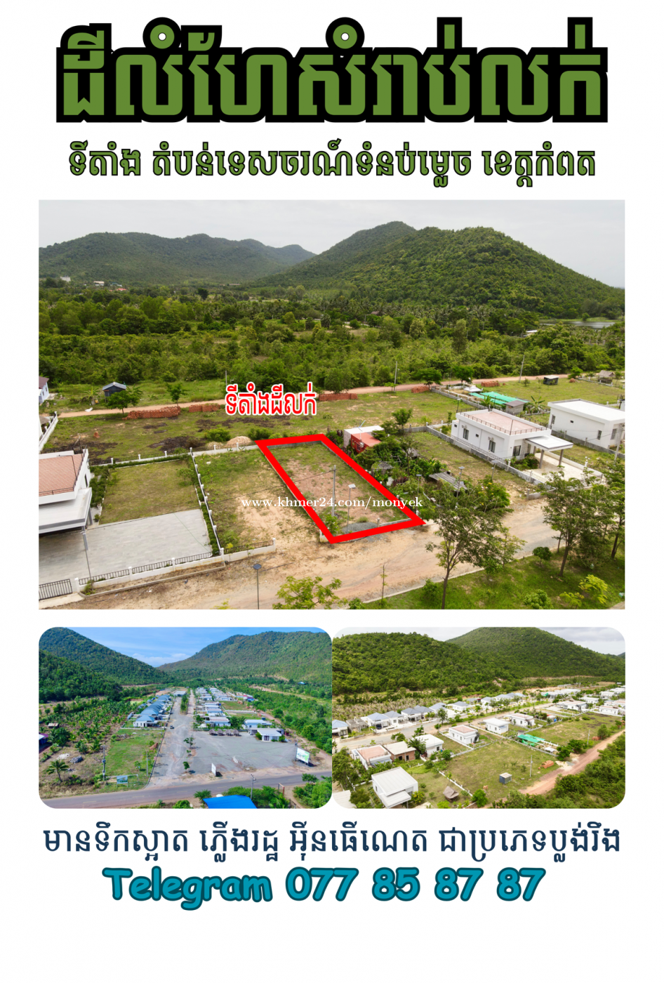 ដីលក់នៅជិត រមណីយដ្ឋាន ម្លេច ( កំពត ) ✅ ទំហំ: 10m x 27m ប្លង់រឹង 💰 តំលៃ 10,000 ជាង 💰 បង់មុន 2500$ នៅសល់រំលោះ ចុះពីផ្លូវជាតិលេខ 3 ចម្ងាយប្រហែល 1300mដល់ដី និង ប្រហែល 3km ពីទំនប់ម្លេច ។ ☎️ពត៍មានលំអិត 098858xxxClick To Call/ 077858xxxClick To Call ចុច ដើម្បីឆាតតាម តេលេក្រាម https://t.me/MlechParadise077858xxxClick To Call