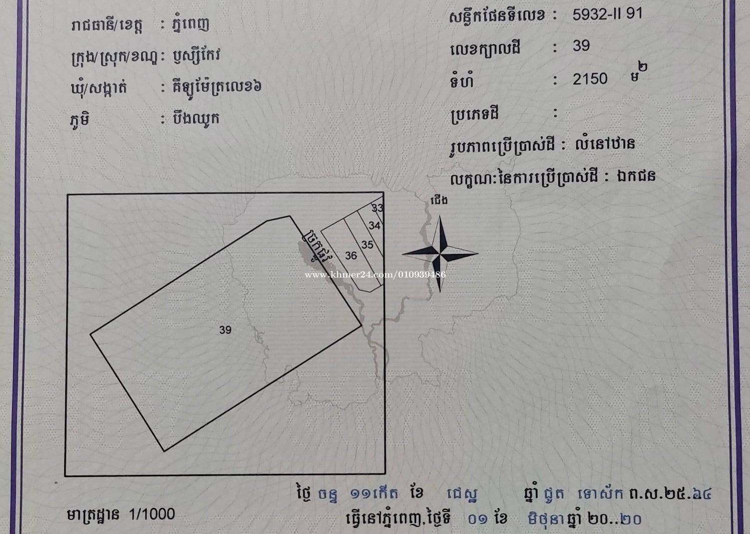 Location: https://maps.app.goo.gl/UDwX4crS97TEkqwA9?g_st=ipc Kiloumaetr Lekh Prammuoy, Ruessei Kaev, Phnom Penh