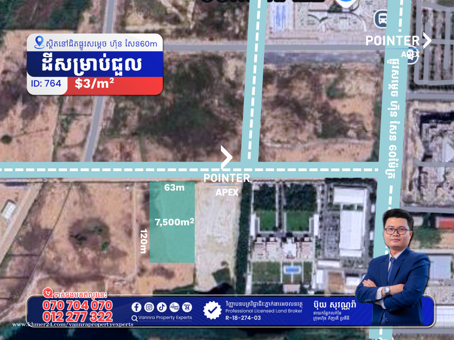 ដីសម្រាប់ជួលនៅជិតផ្លូវ60m សម្រាប់ជួល:$3/m2 ទំហំដី: 63m x 120m (7,500m2) 🔐លេខកូដអចលនវត្ថុ៖ 764 📌 ស្ថិតនៅជិតផ្លូវសម្តេច ហ៊ុន សែន 60ម សង្កាត់ចាក់អង្រែក្រោម ខណ្ឌមានជ័យ ភ្នំពេញ ——————————— ទាក់ទងមកឥលូវនេះ៖ Call: 070704xxxClick To Call / 012277xxxClick To Call Telegram: https://t.me/vannraaa 微信号: vannra-experts - Channel: https://t.me/vannrapropertyexperts - Tiktok: https://www.tiktok.com/@vannra_property_experts - Facebook: https://www.facebook.com/vannra.phnompenh.property/