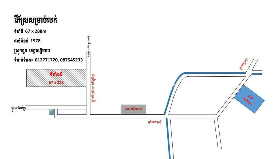 ដីស្រែប្រាំងជិត២ហិចតាលក់បន្ទាន់ ស្រុកពួក ខេត្តសៀមរាប ដីជាប់និងទំនប់ ១៩៧៨ លក់បន្ទាន់ នៅភូមិអំពិល ឃុំសំរោងយា ស្រុកពួក ខេត្តសៀមរាប ជាមួយម្ចាស់ផ្ទាល់ - ប្រភេទដីតំបន់ ២ អាស្រ័យផល - ជាប្រភេទដីស្រែប្រាំង ជាប់ទំនប់ ១៩៧៨ - ទំហំដី៖ 67mx288m - ចុះពីផ្លូវកៅស៊ូទៅរម្មណីយដ្ឋានមេជ្រៃទៅខាងលិច តាមទំនប់ ១៩៧៨ ប្រហែលជាង១គីឡូម៉ែត្រដល់ដី - តម្លៃ $19500 (ចរចារជាមួយម្ចាស់ផ្ទាល់) - អ្នកទីក្រុងចង់ធ្វើស្រែទុកហូបខ្លួនឯងគឺងាយស្រួលបំផុត បើកឡានដល់ទីតាំងដី - សូមទាក់ទង 012771xxxClick To Call, 087545xxxClick To Call Dropped pin https://goo.gl/maps/fUh9Dh84kZZ2ENJQA