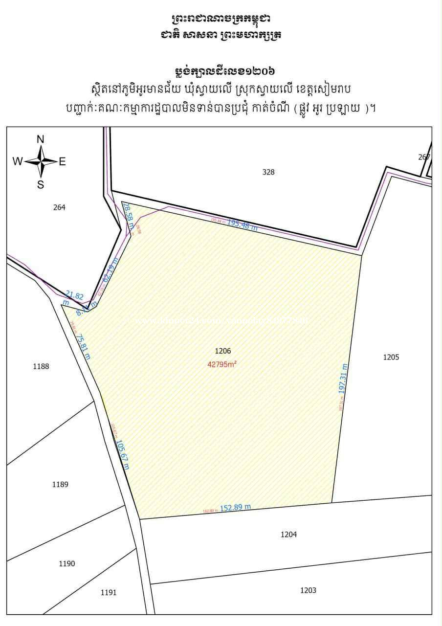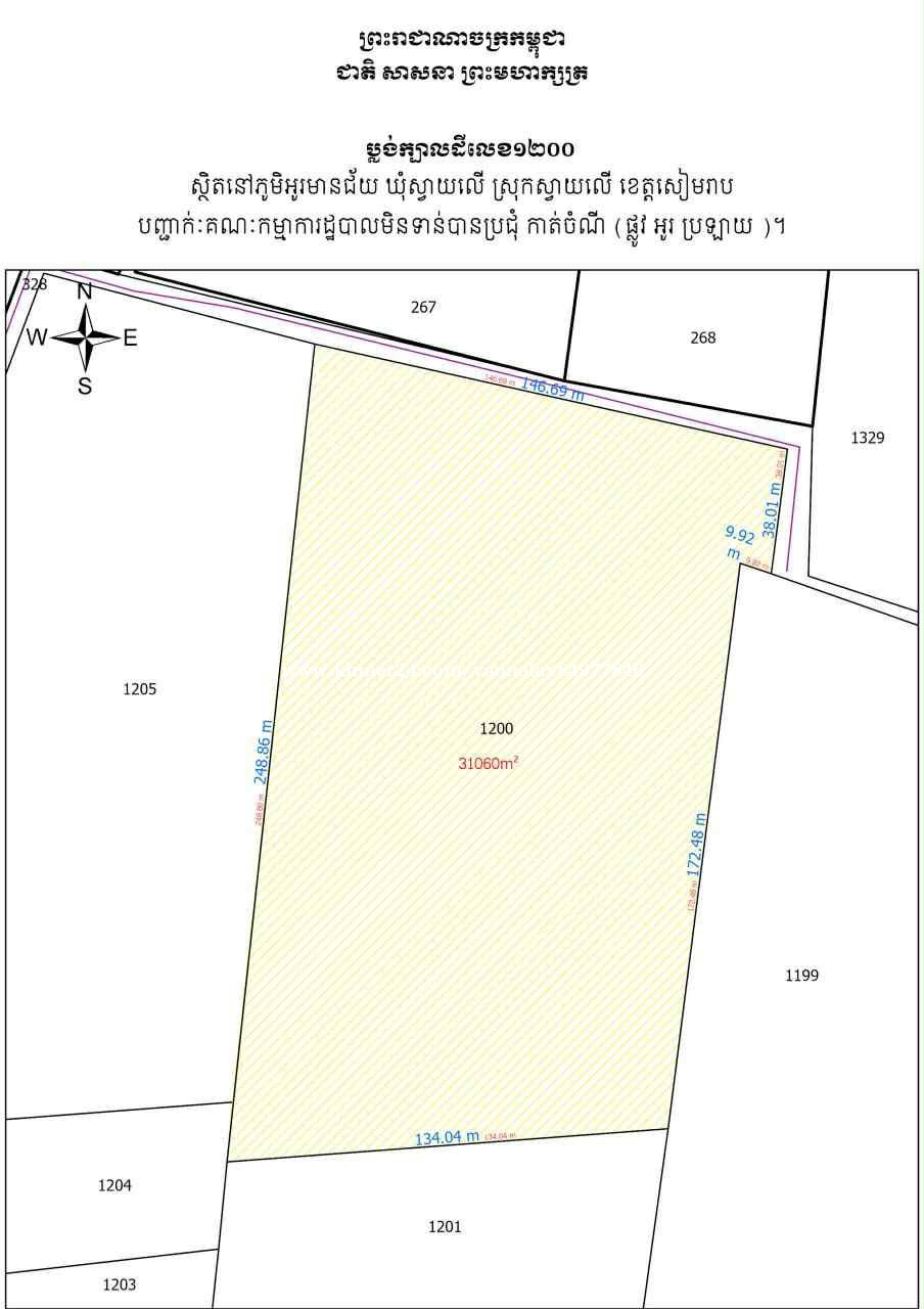 ប្រភេទដីស្រែ និងចម្ការក្បែរជើងភ្នំគូលែន ក្បែររីសត្សស្ពានពស់ ចម្ងាយពីផ្លូវជាតិ ១,០០០ ម៉ែត្រ មានផ្លូវចូលស្រាប់ ធម្មជាតិស្រស់បំព្រង 💗💗តម្លៃចរចារ ១ ហិចតា 25,000 ដុល្លារ💗💗