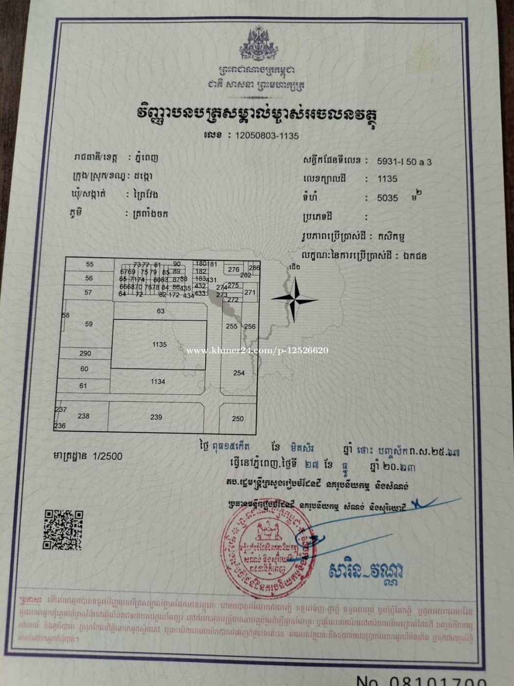 ដីស្អាត ផ្លូវ១៦ម៉ែត ក្បាល50*100 ដីឈ្មោះខ្ញុំផ្ទាល់ប្លង់រឹង
