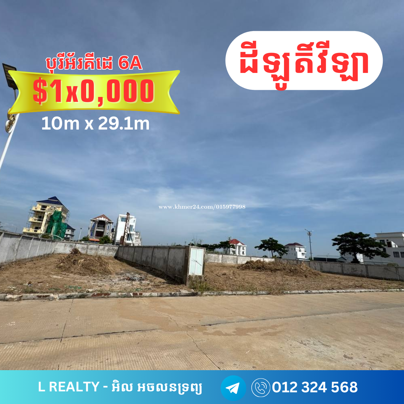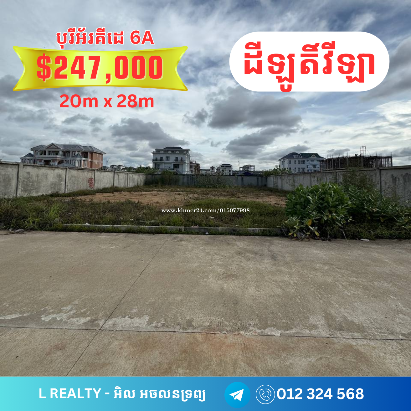 🔊📣ដីឡូតិ៍ បុរីអ័រគីដេលក់បន្ទាន់ តំលៃពិសេស 🔸 ដីឡូតិ៍វីឡាប្លង់រឹងក្នុងគម្រោងបុរីអ័រគីដេ : - ទំហំដី : 10 x 20 តម្លៃលក់: $12x,000 (ដីកែង) - ទំហំដី : 10 x 29.20 តម្លៃលក់: $138,000 កាត់ប្លង់រឹងជូន (ជាប់ដីកែង) - ទំហំដី : 20 x 28 តម្លៃលក់: $24x,000 - ទំហំដី : 28 x 28 តម្លៃលក់: $39x,000 (កែងលើផ្លូវភ្លោះ) + ទីតាំង | Location: បុរីអរ័គីដេ ៦អា #orkide 6A 🔸 ទិសត្បូង 👉សម្រាប់ព័ត៌មានបន្ថែមសូមទូរស័ព្ទមកលេខ៖ 📲012324xxxClick To Call Telegram: https://t.me/Sales_internal_ml Channel telegram https: Channel https://t.me/Phnom_Penh_Condo