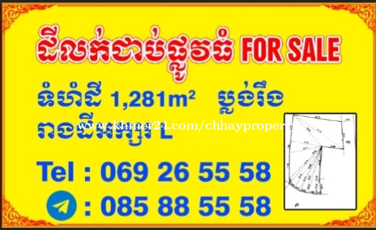 ដីធ្វើអាជីវកម្មសម្រាប់លក់នៅលើផ្លូវធំលេខ1962 ឬ 2011(ផ្លូវបេតុង20មមុខសាលាសង្កាត់ក្រាំងធ្នង់មានភ្លើងបំភ្លឺផ្លូវនៅរាត្រី) 1) ទំហំដី: 20*30ម (598m2 ប្លង់រឹង) កំពុងជួយឱ្យគេលក់ឡាន(កុងត្រាចប់ខែ12 2026) តម្លៃលក់: $2,200/m2 ($1,315,600 តម្លៃចរចា) 2) ទំហំដី: 1,281m2 ប្លង់រឹង (រឿងដីអក្សរអិលL) កំពុងជួយឱ្យគេ(កុងត្រាចប់ខែ12 2026) តម្លៃលក់: $1,300/m2 ($1,665,300 តម្លៃចរចា) តម្លៃជួល: $1,800/ក្នុងមួយខែ. Tel: 069265xxxClick To Call, Telegram: 085885xxxClick To Call
