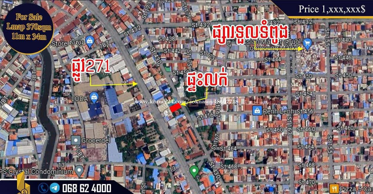 Location: តម្លៃពិសេសមិនធ្លាប់មាន 9xx xxx$ ធានាតម្លៃក្រោមទីផ្សា 📢 Land and House for sale - Land shape: 11m x 36m - Land size in hard title 370sqm (Lmap) 👍 Located on road 430, 4 Village, Sangkat Tuol Tumpong Ti 2, Khan Chamkarmon, Phnom Capital. Tuol Tumpung Pir, Chamkar Mon, Phnom Penh