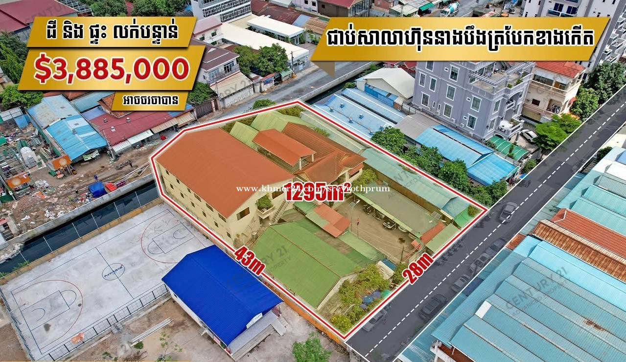 🏠 ដី និង ផ្ទះ នៅជាប់សាលារៀនហ៊ុននាងបឹងត្របែកខាងកើត ត្រូវការលក់បន្ទាន់ * តម្លៃត្រឹមតែ៖ 3,885,000 ដុល្លារ (អាចចរចាបាន) * 1ម៉ែត្រការ៉េ៖ 3000 ដុល្លារ (ចរចា) * តម្លៃនេះបូករួមទាំងការផ្ទេរកម្មសិទ្ធិប្លង់រឹងជូន * ទំហំដី៖ 28ម x 43ម ( 1295 ម៉ែត្រការ៉េ ) * ទទឹងមុខ28ម និងក្រោយ 32ម * ទំហំផ្ទះA៖ 10ម x 20ម * ទំហំផ្ទះB៖ 13ម x 21ម * បន្ទប់គេង 35 និង បន្ទប់ទឹក 35 * មានចំណូលជួលស្រាប់ $4,500/ខែ 🚩ទីតាំង៖ នៅលើផ្លូវ103 ជាប់សាលារៀនហ៊ុននាងបឹងត្របែកខាងកើត 350មពីផ្សារបឹងត្របែកផ្លាហ្សា និង 2នាទីពីវិទ្យាល័យបឹងត្របែក និង សាលាRULE
