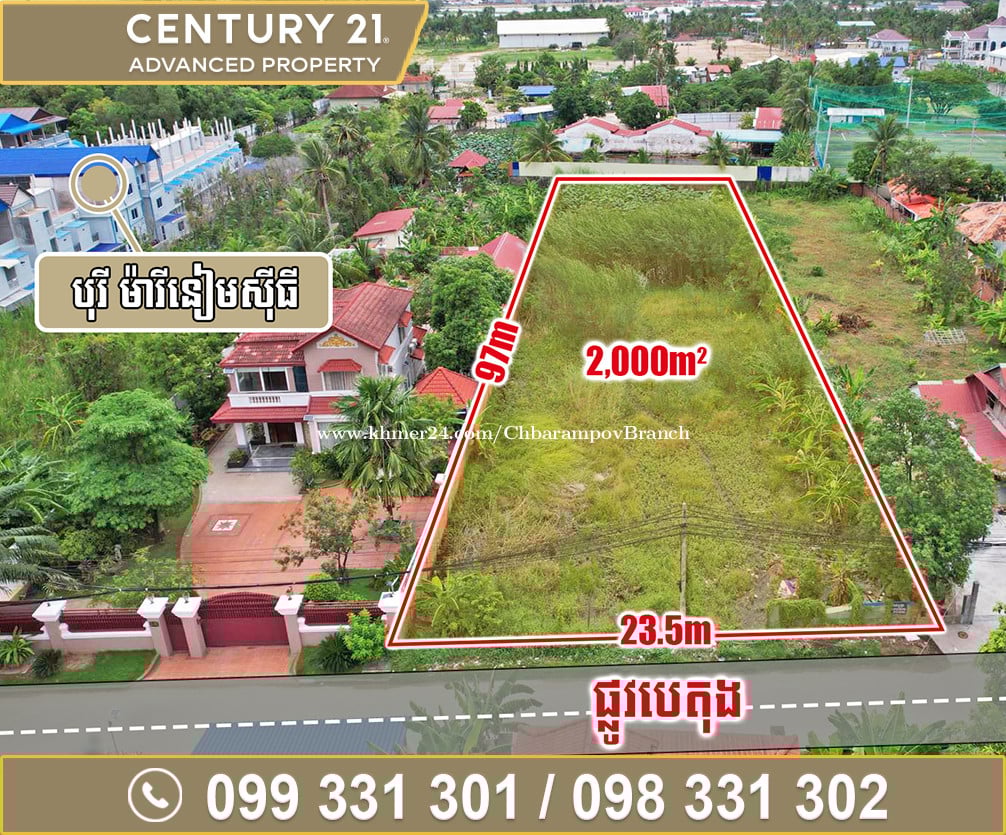 🏘 ដី នៅជិតផ្សារចុងព្រែក សង្កាត់ព្រែកឯង ចុះពីផ្លូវជាតិលេខ1 ចម្ងាយ1.2គីឡូម៉ែត្រ ត្រូវការលក់បន្ទាន់ខ្លាំង * តម្លៃត្រឹមតែ៖ 390 ដុល្លារ/m2 (អាចចរចាបាន) * តម្លៃនេះបូករួមទាំងការផ្ទេរកម្មសិទ្ធិប្លង់រឹងជូន * ទំហំដី៖ 23.5ម x 97ម (2,000ម៉ែត្រការ៉េ) 🚩 ទីតាំង៖ នៅជិតផ្សារចុងព្រែក សង្កាត់ព្រែកឯង ចុះពីផ្លូវជាតិលេខ1 ចម្ងាយ1.2គីឡូម៉ែត្រ ខណ្ឌច្បារអំពៅ => ជាមួយនឹងលក្ខខណ្ឌបង់ប្រាក់កាន់តែប្រសើរ លោកអ្នកអាចបង់រំលស់ជាមួយនឹងធនាគាររយៈពេលវែង 👉 សម្រាប់ព័ត៌មានបន្ថែមសូមទូរស័ព្ទមកលេខ៖ 📲 099331xxxClick To Call 📲 098331xxxClick To Call ------------------------------