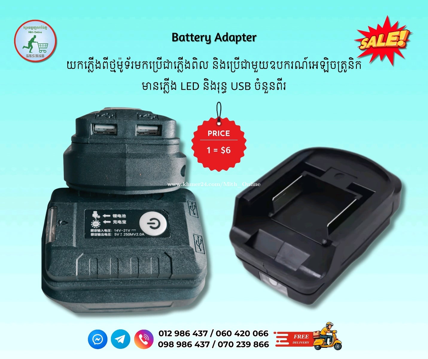 ដុំបំប្លែងភ្លើងម៉ូទ័រ ប្រើសម្រាប់យកភ្លើងពីថ្មម៉ូទ័រមកប្រើជាមួយឧបករណ៍អេឡិចត្រូនិកផ្សេងៗ អំពូលឬកង្ហា USB ។ល។ 💰 តម្លៃ $6/unit, 2=$10 📦 ដឹកជញ្ជូនឥតគិតថ្លៃ Free Delivery ☎️012986xxxClick To Call / 060420xxxClick To Call ☎️098986xxxClick To Call / 070239xxxClick To Call