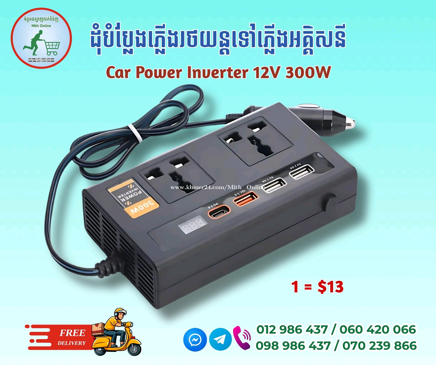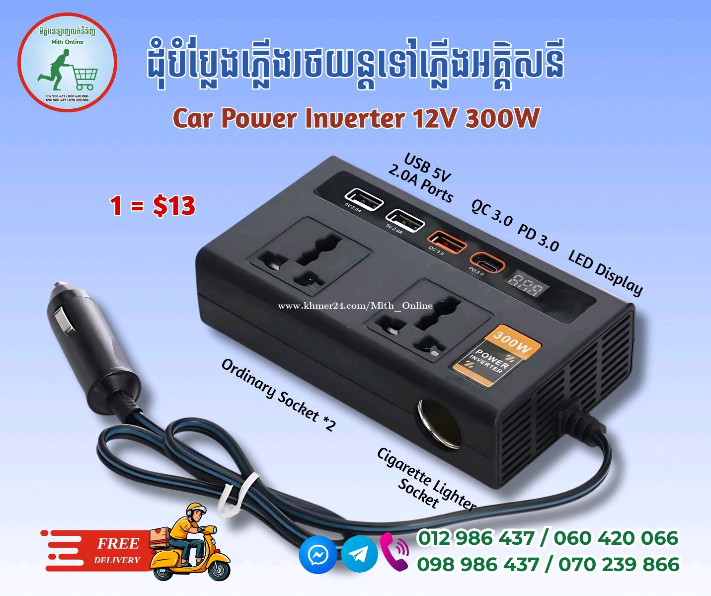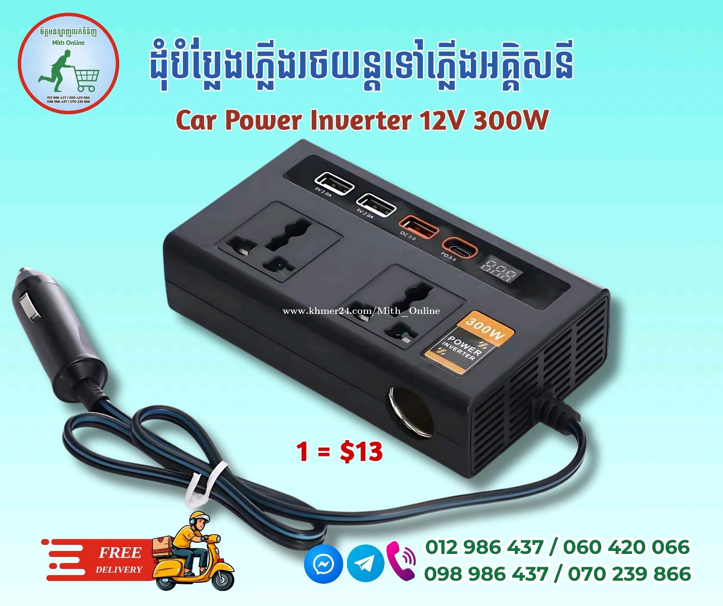 🔌 ឌុយបំប្លែងភ្លើងរថយន្តទៅភ្លើងអគ្គិសនី 12V 300W 🔌 Car Power Inverter 12V 300W 💰 តម្លៃ $13/unit (12V) 📦 Free Delivery ☎️ 012986xxxClick To Call / 060420xxxClick To Call ☎️ 098986xxxClick To Call / 070239xxxClick To Call