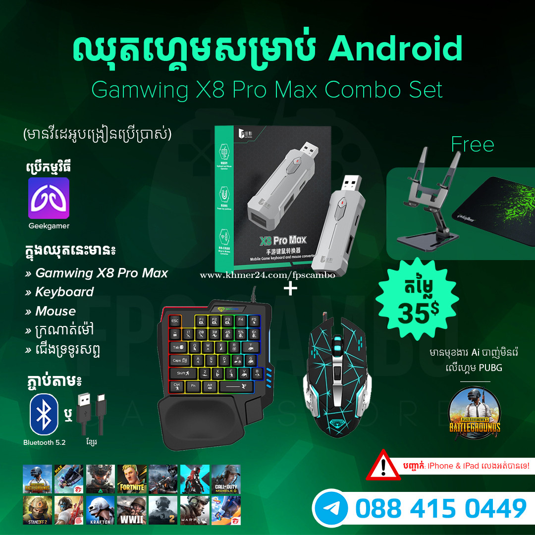 ✅ ភ្ជាប់ Keyboard & Mouse លេងបានគ្រប់ហ្គេមនៅលើ Android ✅ បញ្ជាកាន់តែច្បាស់ លឿន និងមានប្រសិទ្ធភាព ✅ លែងបារម្ភរឿង Lag ព្រោះវាដំណើរការលឿនខ្លាំង (125Hz Polling Rate) ✅ ពិសេស X8 Pro Max មាន AI Recoil Control ជួយទប់ទល់ការដាច់អាវុធដោយស្វ័យប្រវត្តិទៀតផង! 🚚 កម្មង់ភ្លាមបានភ្លាម មានស្តុកស្រាប់ ហ្វ្រីដឹកជូនទូទាំងប្រទេស ➡️ ឆាតចូលផេក ឬទំនាក់ទំនងតាម Telegram: http://t.me/fpscambo